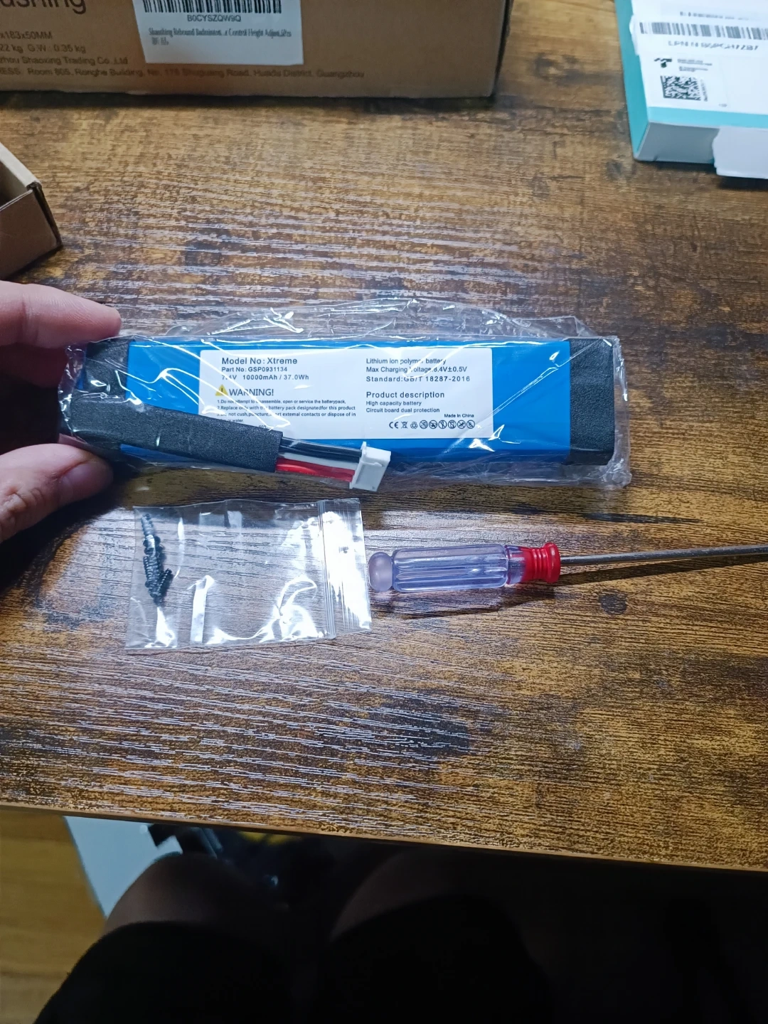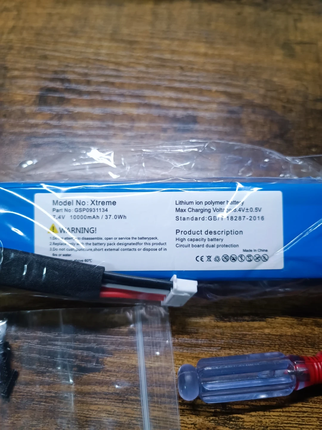 This is a WirelessFinest battery replacement kit. It's a high capacity lithium ion polymer battery for your Xtreme device. The kit includes the battery, tool, and screws for installation.