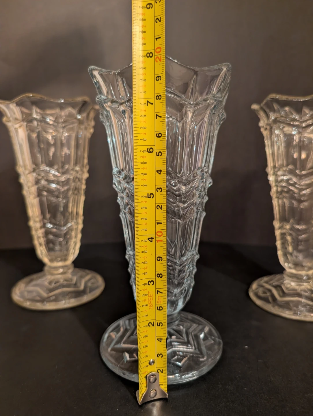 Set of 3 Art Deco 1930s Pressed Glass Vases
