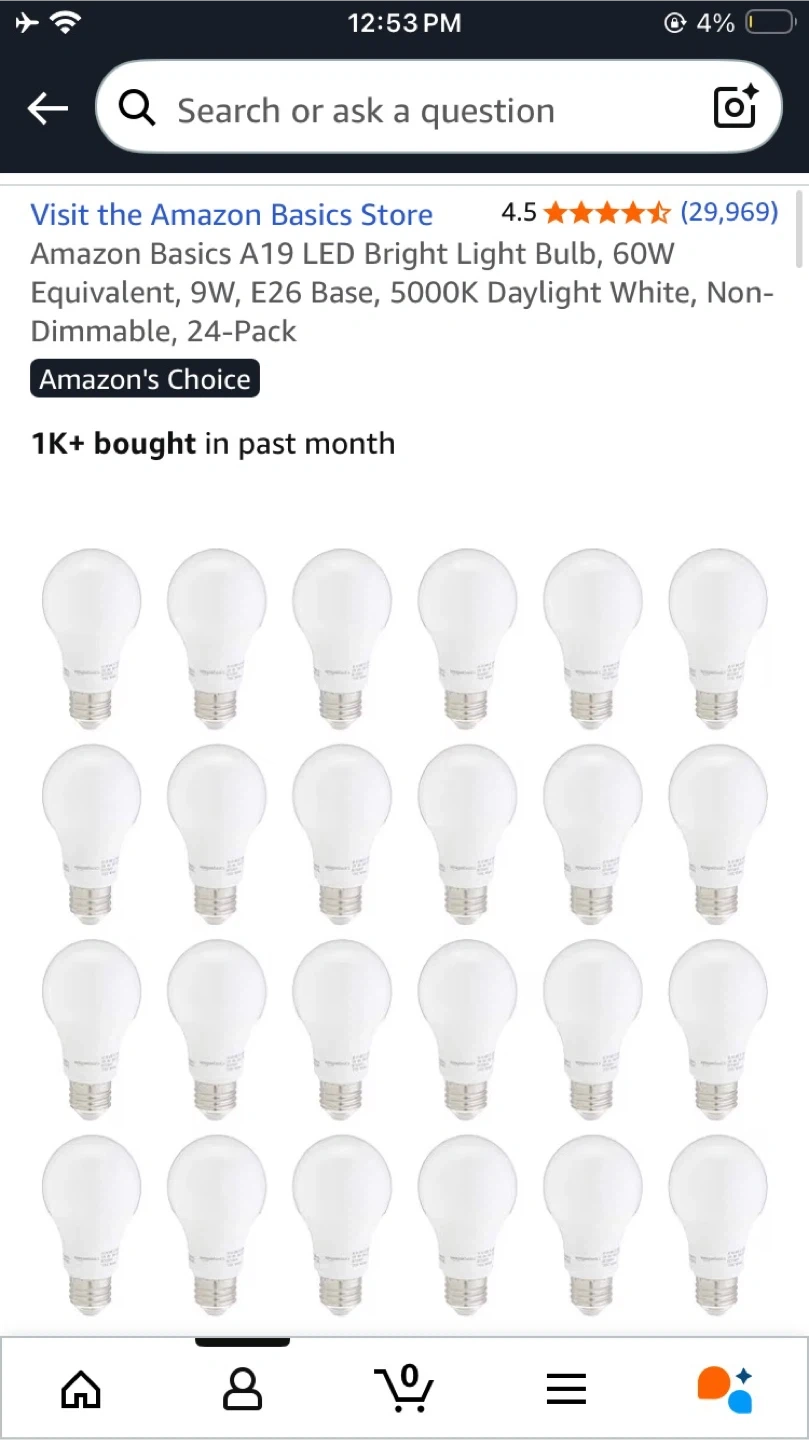 Amazon Basics A19 LED Daylight Light Bulbs - 24 Pack