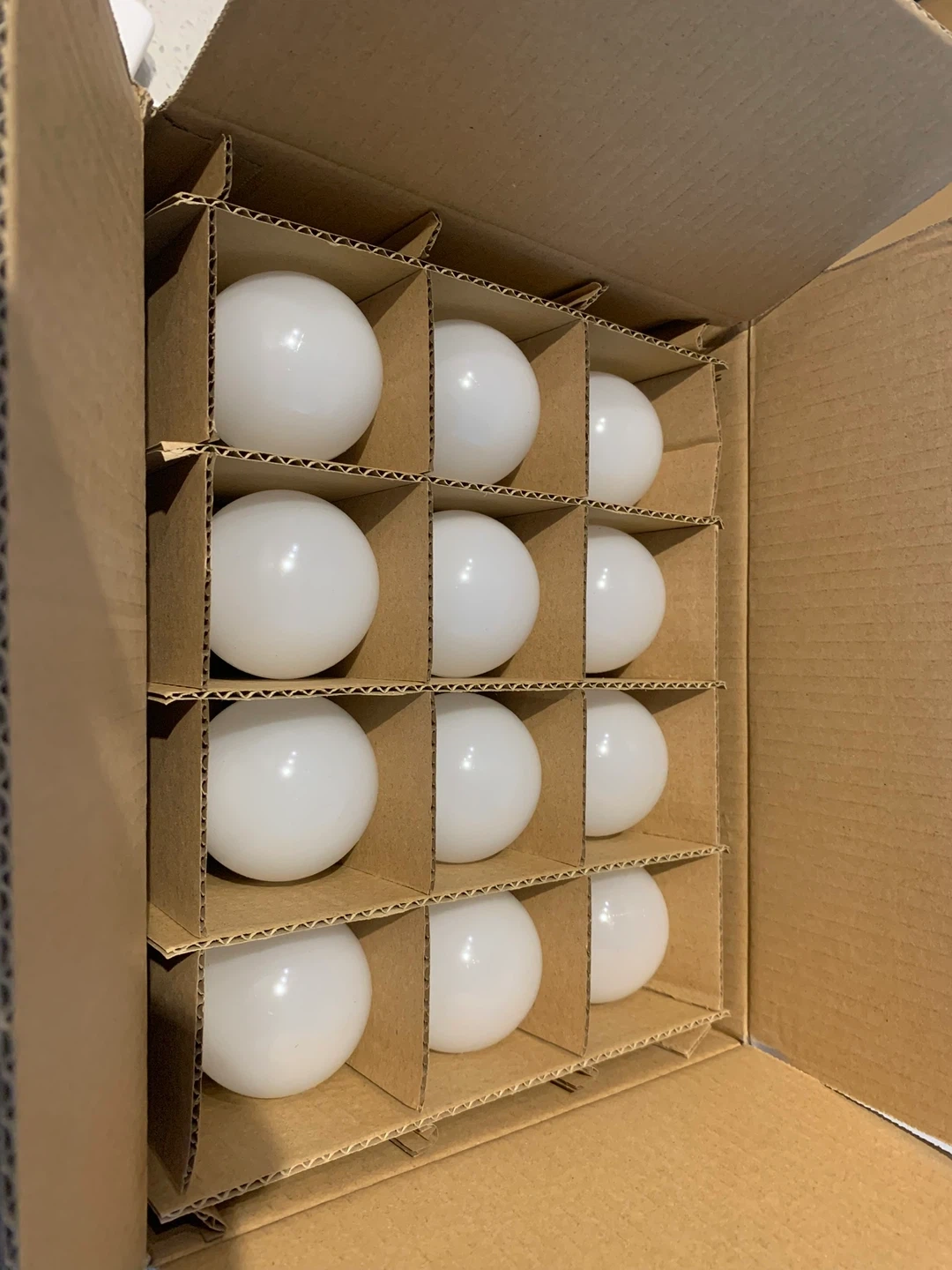 These are Amazon Basics A19 LED light bulbs. They provide 60W equivalent brightness while using only 9W. The colour temperature is 5000K daylight white. This is a 24-pack.