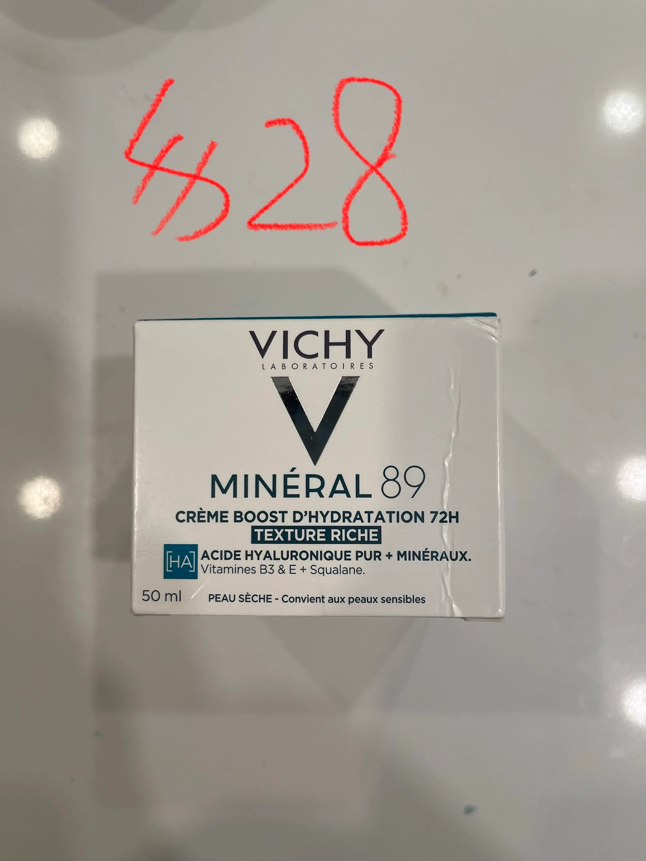 This Vichy Minéral 89 cream offers 72-hour hydration with a rich texture. It's formulated with pure hyaluronic acid, minerals, vitamins B3 & E, and squalane. Suitable for dry, sensitive skin.