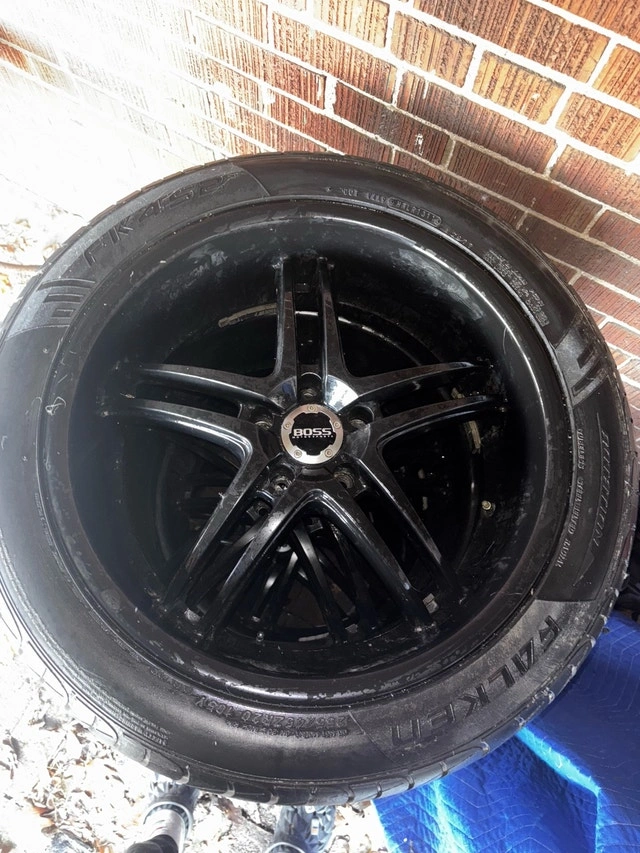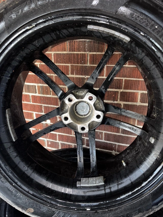 Selling a full set of 4 wheels with tires. Rim size: 20x8.5. Tire size: 255/45ZR20 105Y. 5-lug wheels (please verify fitment on your car). Black multi-spoke style. Tires hold air, wheels are straight. Includes balance weights. Price: $600 for the set (selling as a package only). Pickup in Toronto. If you know your bolt pattern/fitment, bring your info and we can double-check visually.