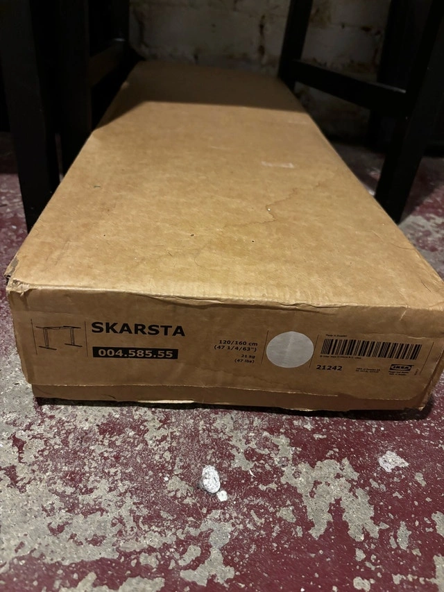 Brand new IKEA SKARSTA sit/stand desk underframe (manual crank), white. This is for tabletops 120/160 cm (47 1/4” / 63”). Model / article number: 004.585.55. This is the underframe only (tabletop not included). SKARSTA is discontinued, but the current IKEA equivalent TROTTEN underframe is about $200 + tax new, so this is a cheaper option if you already have a tabletop. For Sale By: Owner.