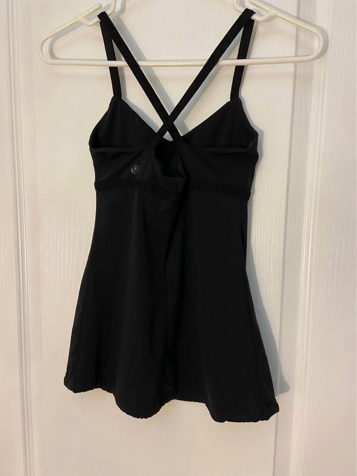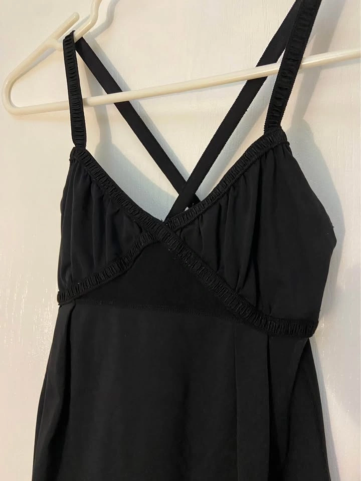 Lululemon Dance Strap Tank Top with crossed elastic straps and a cinchable drawcord at the hem. Colour: Black (logo slightly wearing off). Size 0, fits like an XS. Does not include bra padding. Barely worn. Selling because it is too small for me. Pick up on the North side of St. Thomas.