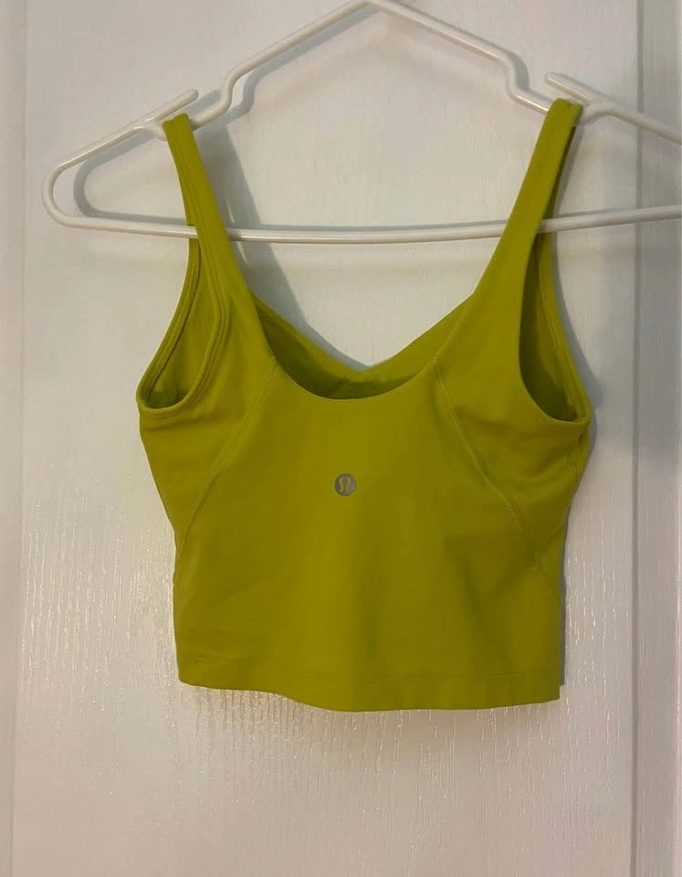 Lululemon Align Tank Top (Cropped). Colour: Yellow Serpentine (Looks more green). Size 2 - fits like a size 0 (XS). Does not include bra padding. Barely worn. Selling because it is too tight on me. Pick up on the North side of St. Thomas.