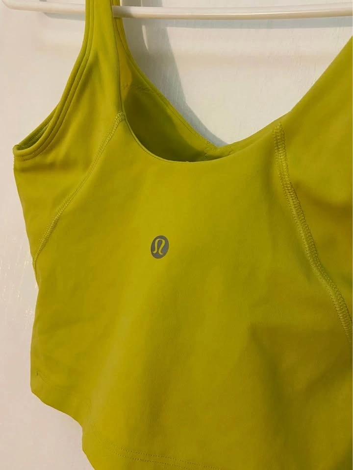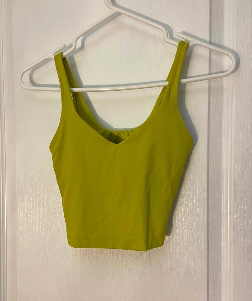 Lululemon Align Tank Top (Cropped). Colour: Yellow Serpentine (Looks more green). Size 2 - fits like a size 0 (XS). Does not include bra padding. Barely worn. Selling because it is too tight on me. Pick up on the North side of St. Thomas.