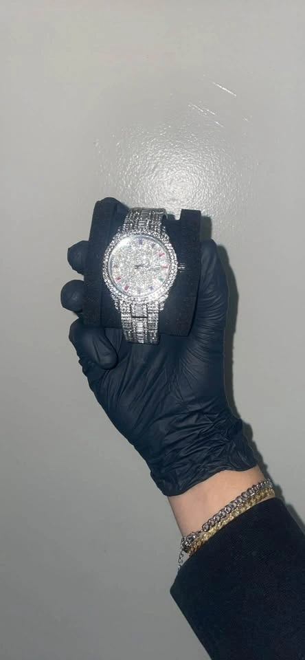 Stand out with this luxurious watch, fully iced out in VVS simulated CZ stones. Perfect for those who want an affordable modern luxury style.