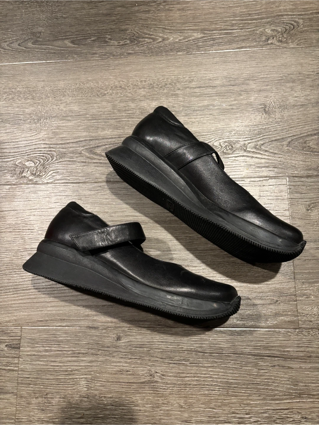 These are Steve Madden Mary Jane shoes. The shoes are black and made of leather. They're a size 8.5.