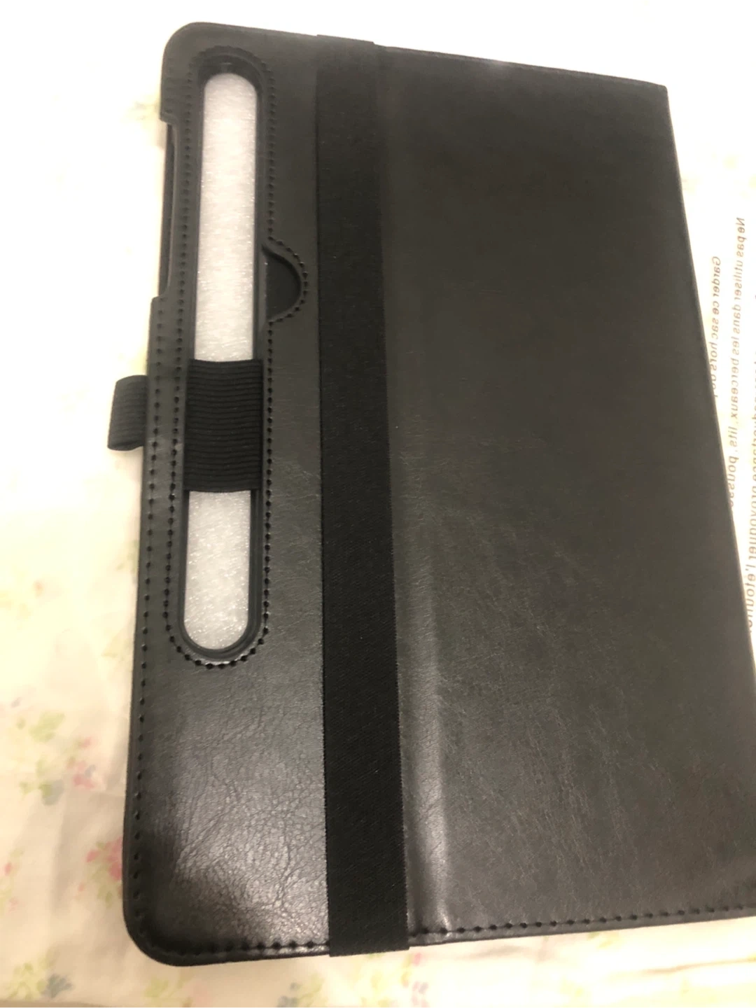 This versatile tablet case offers protection and style. It features a sleek black exterior with a contrasting brown wave accent. It includes an elastic band for secure closure and internal slots for cards or documents. The case also has a built-in stand for hands-free viewing. Its durable construction safeguards your device from everyday wear and tear.