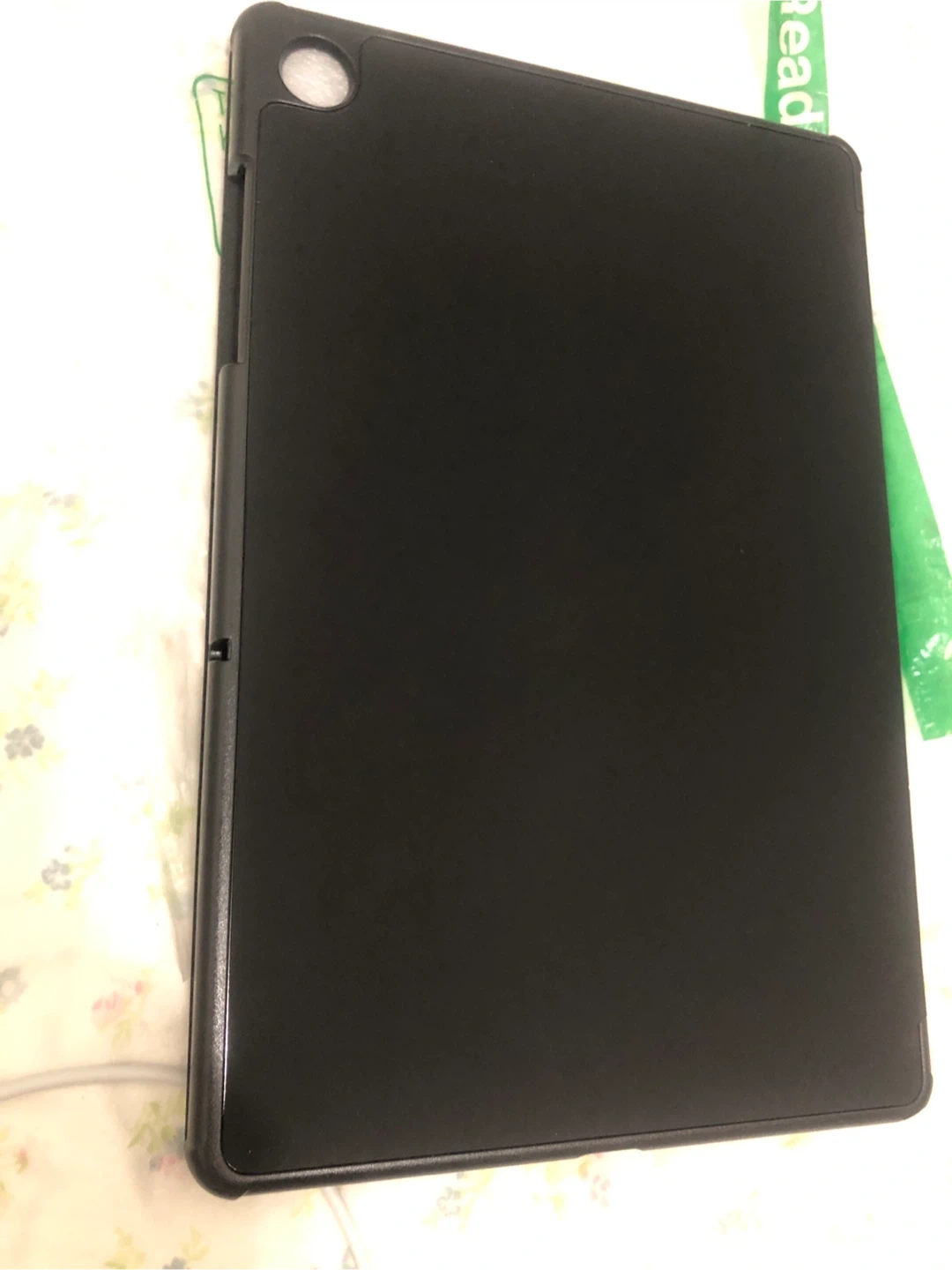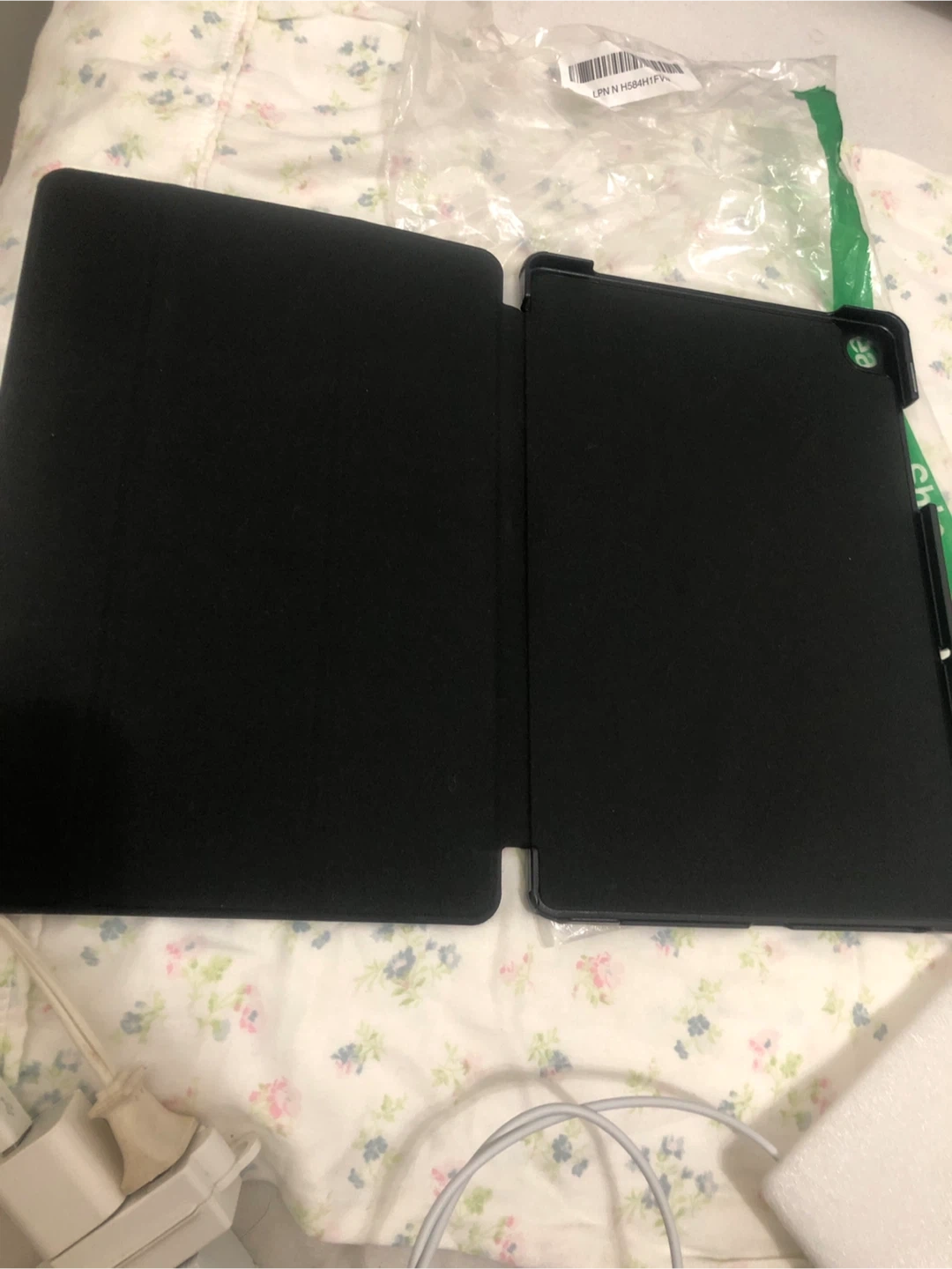 Black folio-style case for a tablet. It has a smooth exterior and a soft interior lining. It folds for stand functionality.