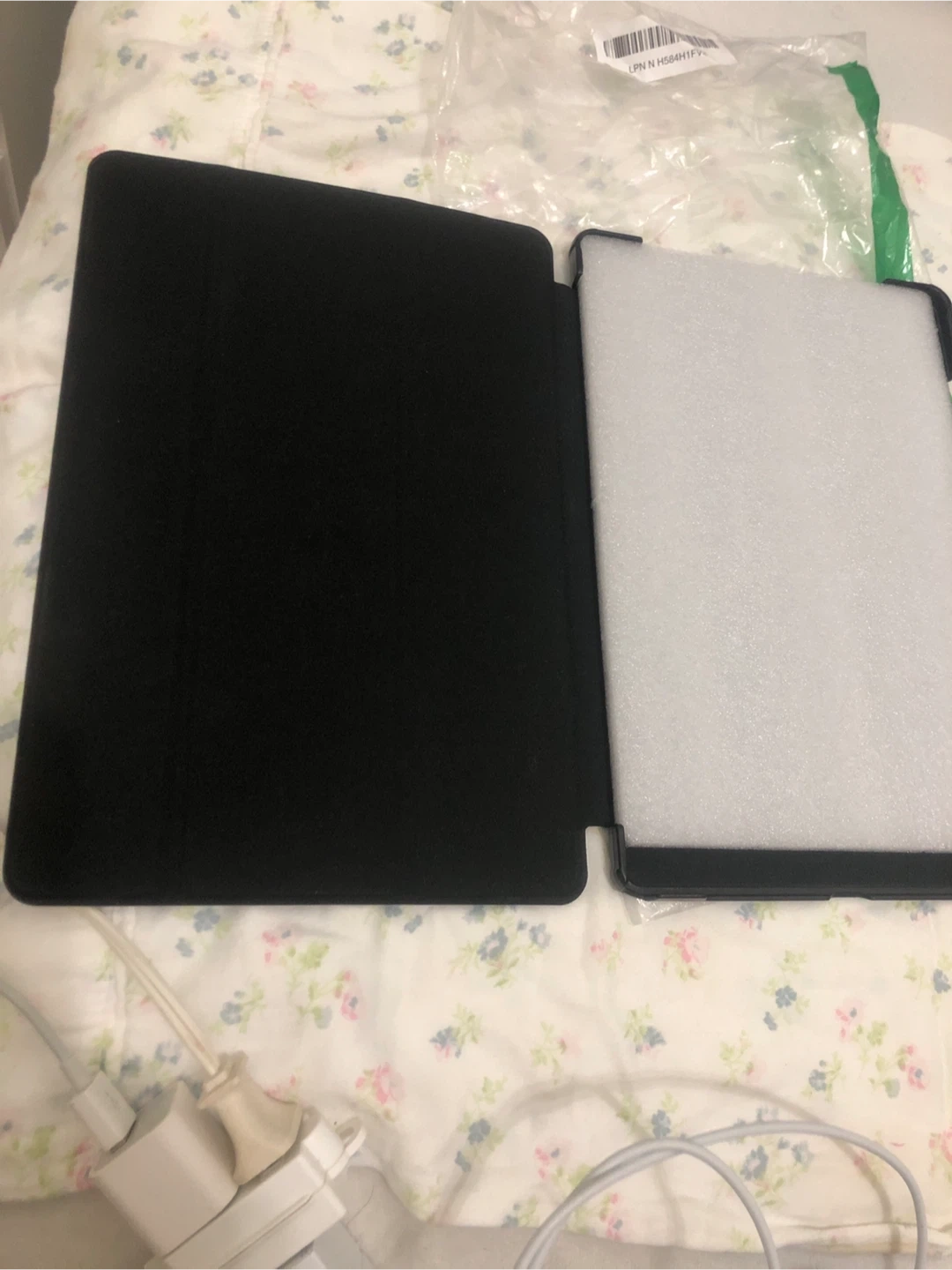 Black folio-style case for a tablet. It has a smooth exterior and a soft interior lining. It folds for stand functionality.