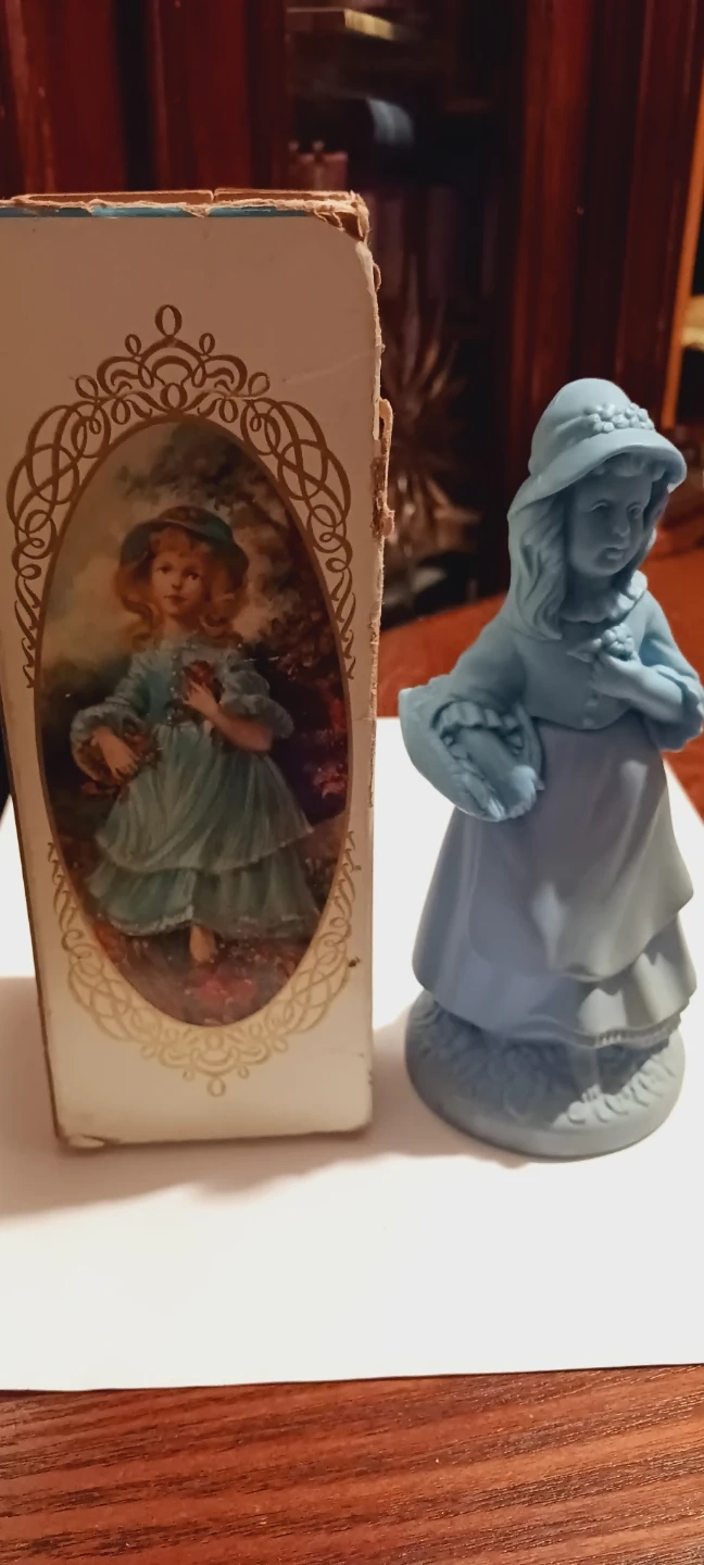 Collectible old vintage LITTLE GIRL BLUE SOMEWHERE COLOGNE 3oz FULL BOTTLE. The bottle is blue ceramic figurine shaped as