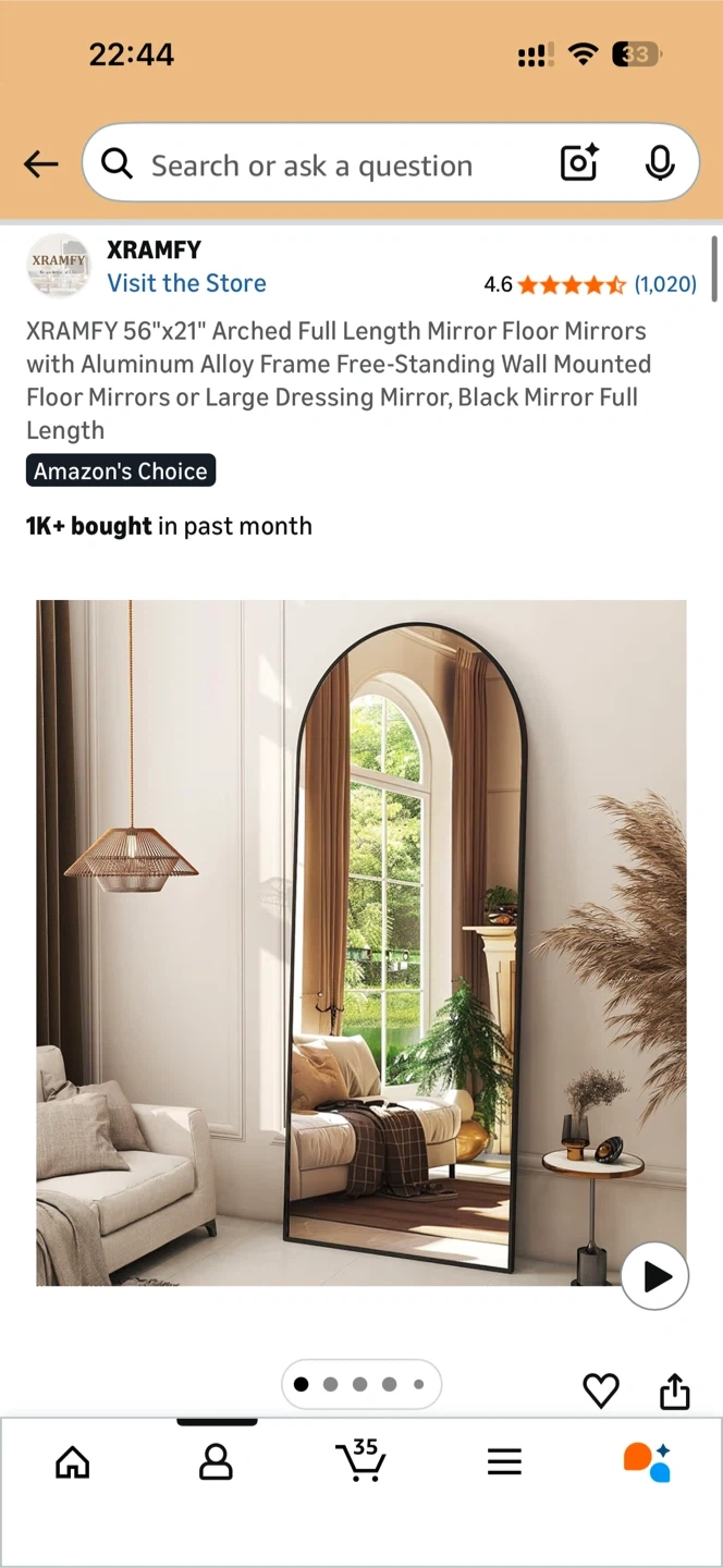Arched Full Length Mirror - Black