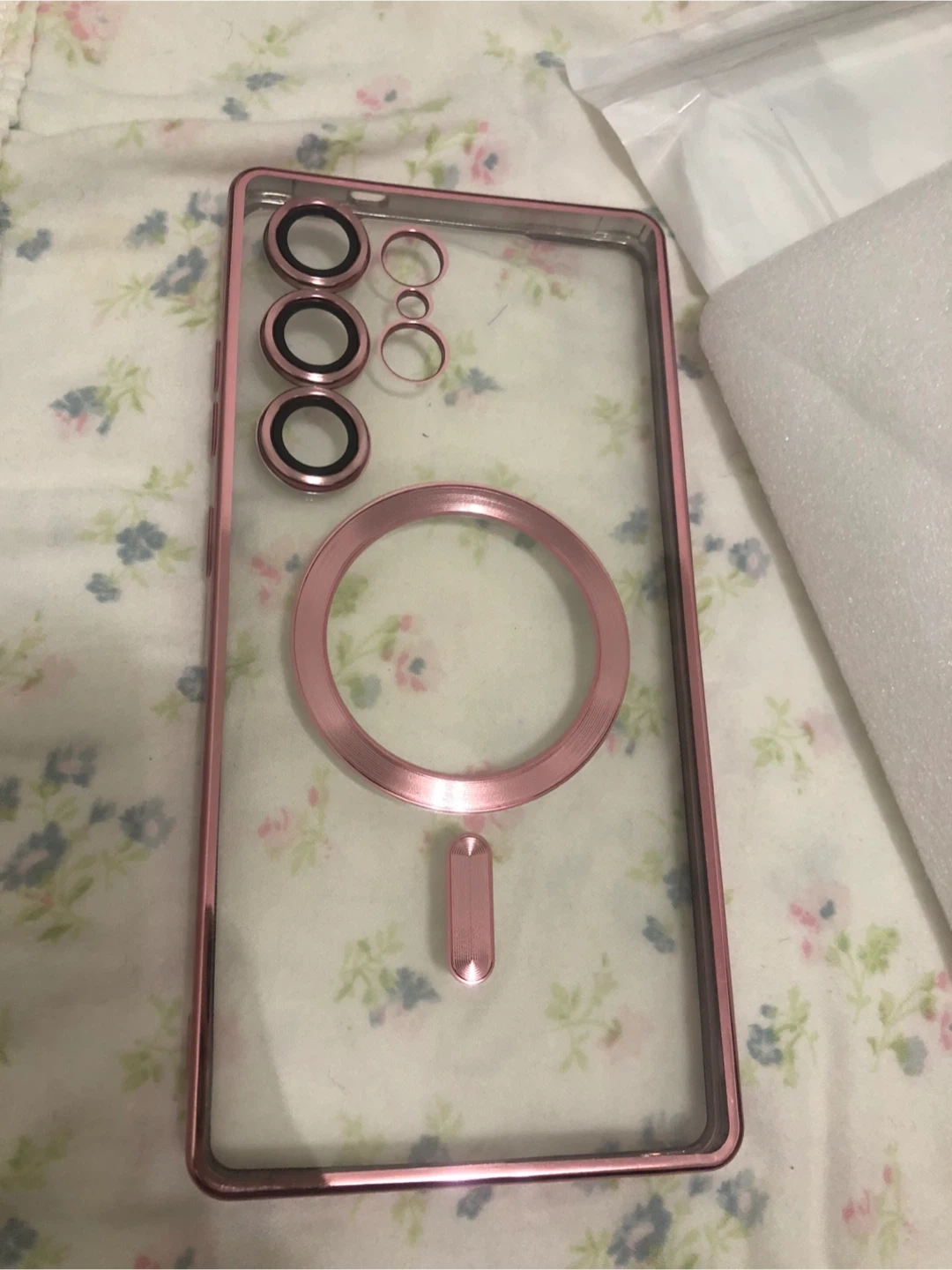 This New rose gold phone case offers excellent protection for your Samsung S25 Ultra. It's designed with a clear back and a metallic bumper. Includes a protective ring for camera lenses and a magnetic ring for accessories. Offers a stylish look and practical defence!