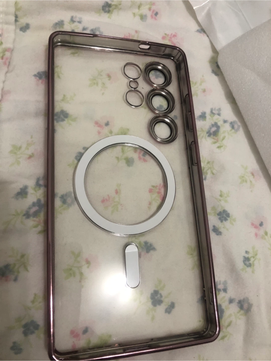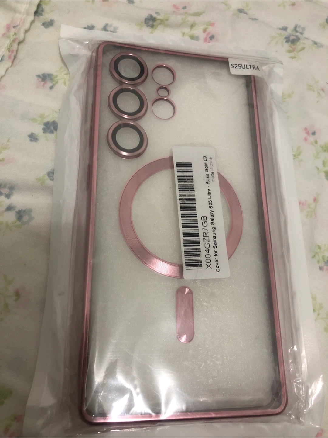 This New rose gold phone case offers excellent protection for your Samsung S25 Ultra. It's designed with a clear back and a metallic bumper. Includes a protective ring for camera lenses and a magnetic ring for accessories. Offers a stylish look and practical defence!