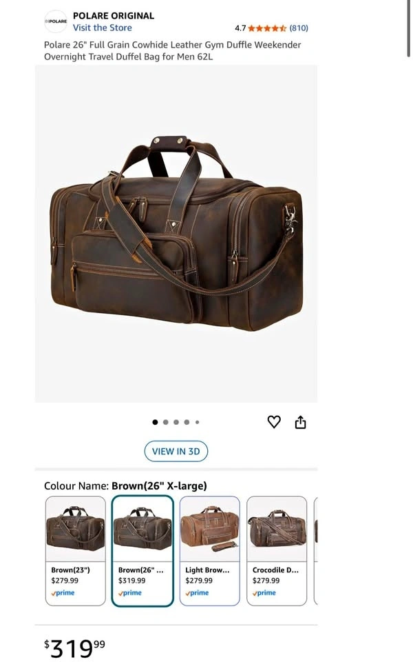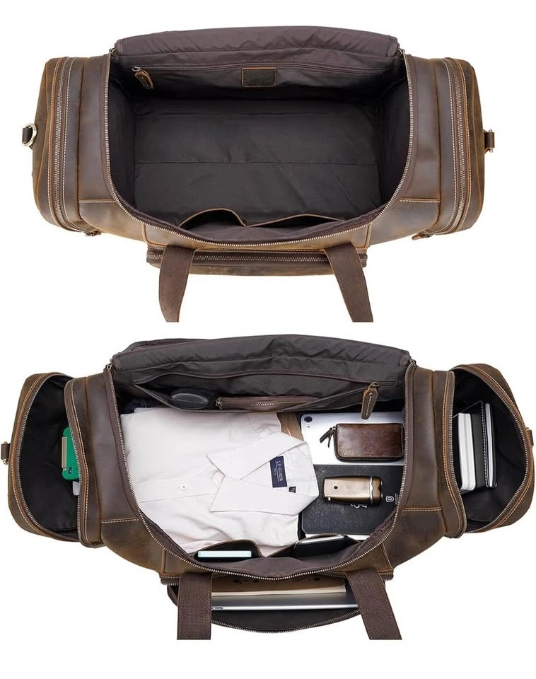 Travel in style with this Polare 26” full-grain cowhide leather duffle bag. Perfect for gym, weekend getaways, or overnight trips, this durable and spacious bag combines luxury with functionality. With a 62L capacity, it easily fits all your essentials, while the premium leather ensures long-lasting quality.