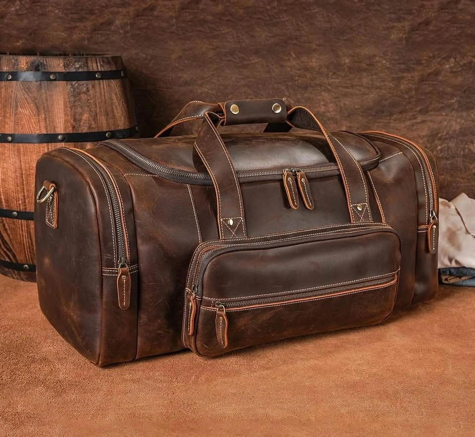 Travel in style with this Polare 26” full-grain cowhide leather duffle bag. Perfect for gym, weekend getaways, or overnight trips, this durable and spacious bag combines luxury with functionality. With a 62L capacity, it easily fits all your essentials, while the premium leather ensures long-lasting quality.