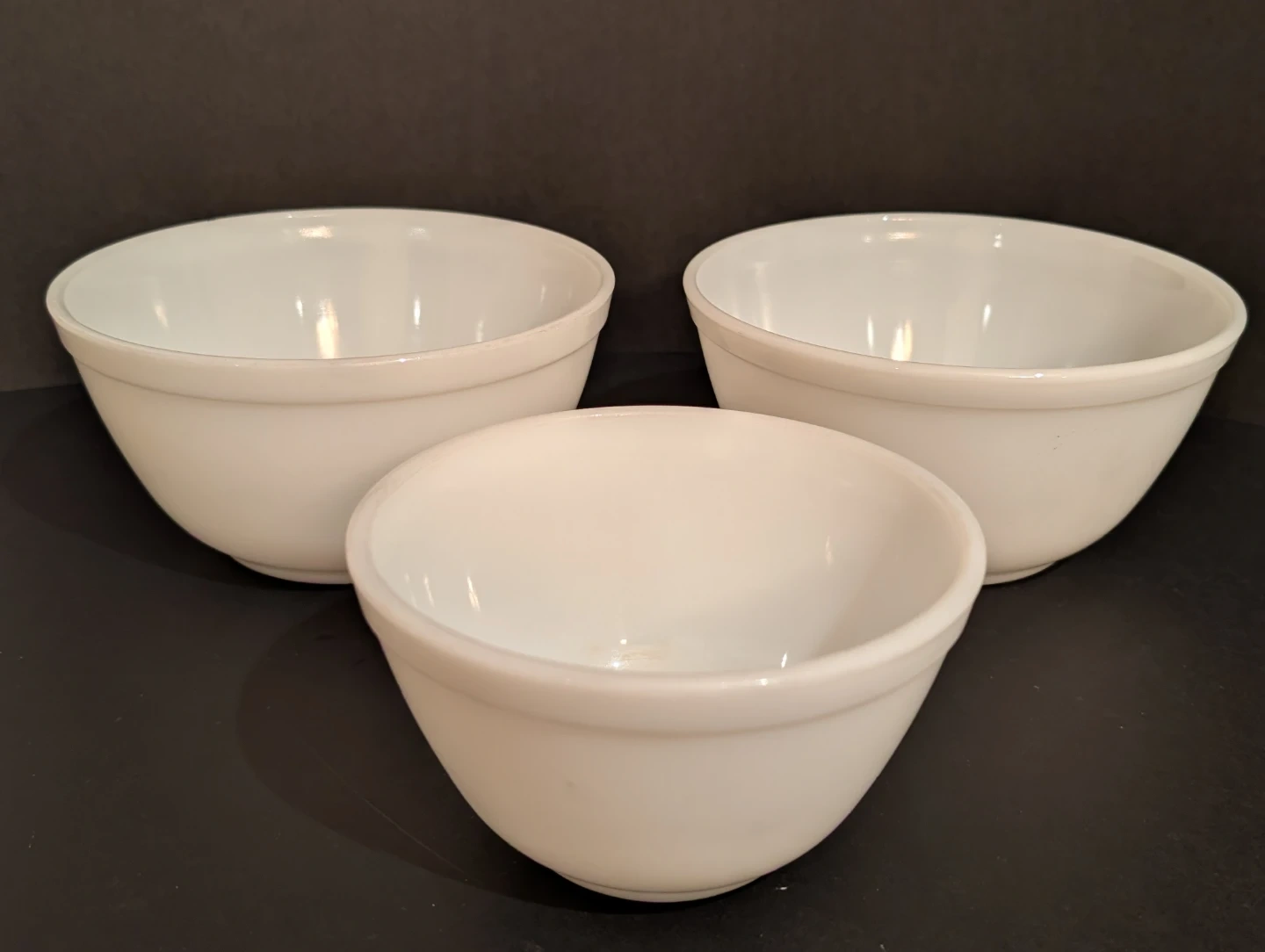 Set of 3 Vintage Pyrex Milk Glass Ovenware Mixing Bowls