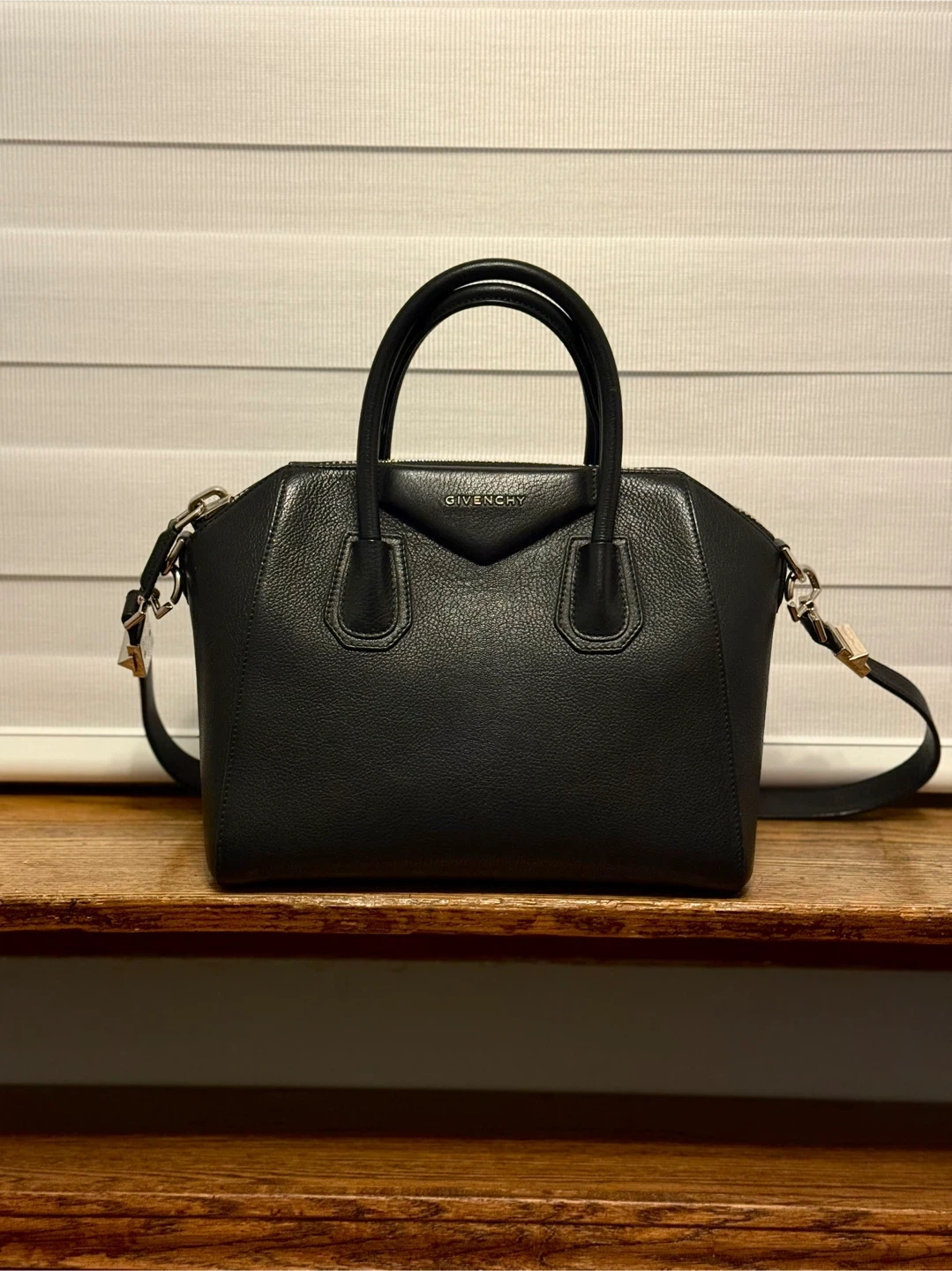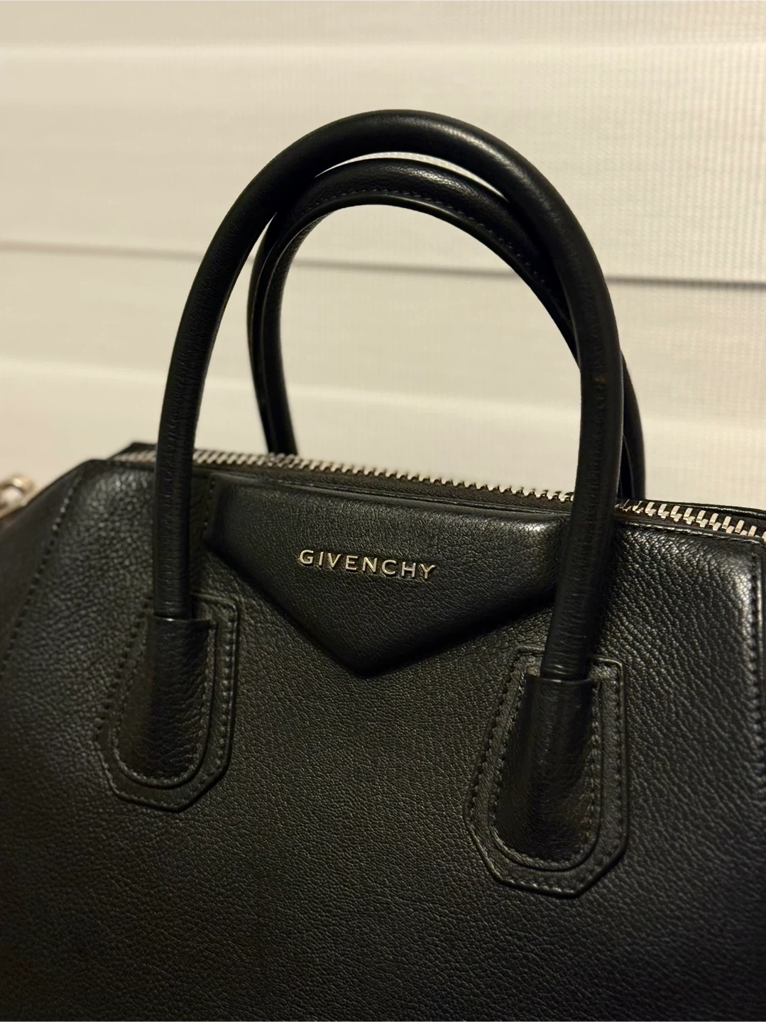 Buy & SellGivenchy Black Leather Antigona BagGivenchy Black Leather Antigona Bag$1,290This is a Givenchy Antigona bag in black leather. It features top handles and a detachable shoulder strap. It’s classic and in great condition.ConditionLike newBrandGivenchyWHERE TO MEETNorth York Centre Second CupView MapSELLERverifiedAriFinch14934 reviews1 chats·1 favorites·32 viewsSEND CHAT TO SELLERHi Ari! I’m interested in your listing.Hi Ari! I’m interested in your listing.Get the Karrot app to chatSign In to chat