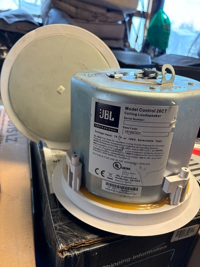 Selling a used JBL Control 26CT ceiling loudspeaker, perfect for professional audio setups. This speaker is designed for 70.7V or 100V systems with selectable taps to suit various installation needs. It's in good working condition and ready to deliver quality sound. Specifications: Model: Control 26CT Type: Ceiling Loudspeaker Voltage Input: 70.7V or 100V, Selectable Taps Suitable for use in air handling spaces. Cash accepted. Cashless payment accepted. For sale by owner.