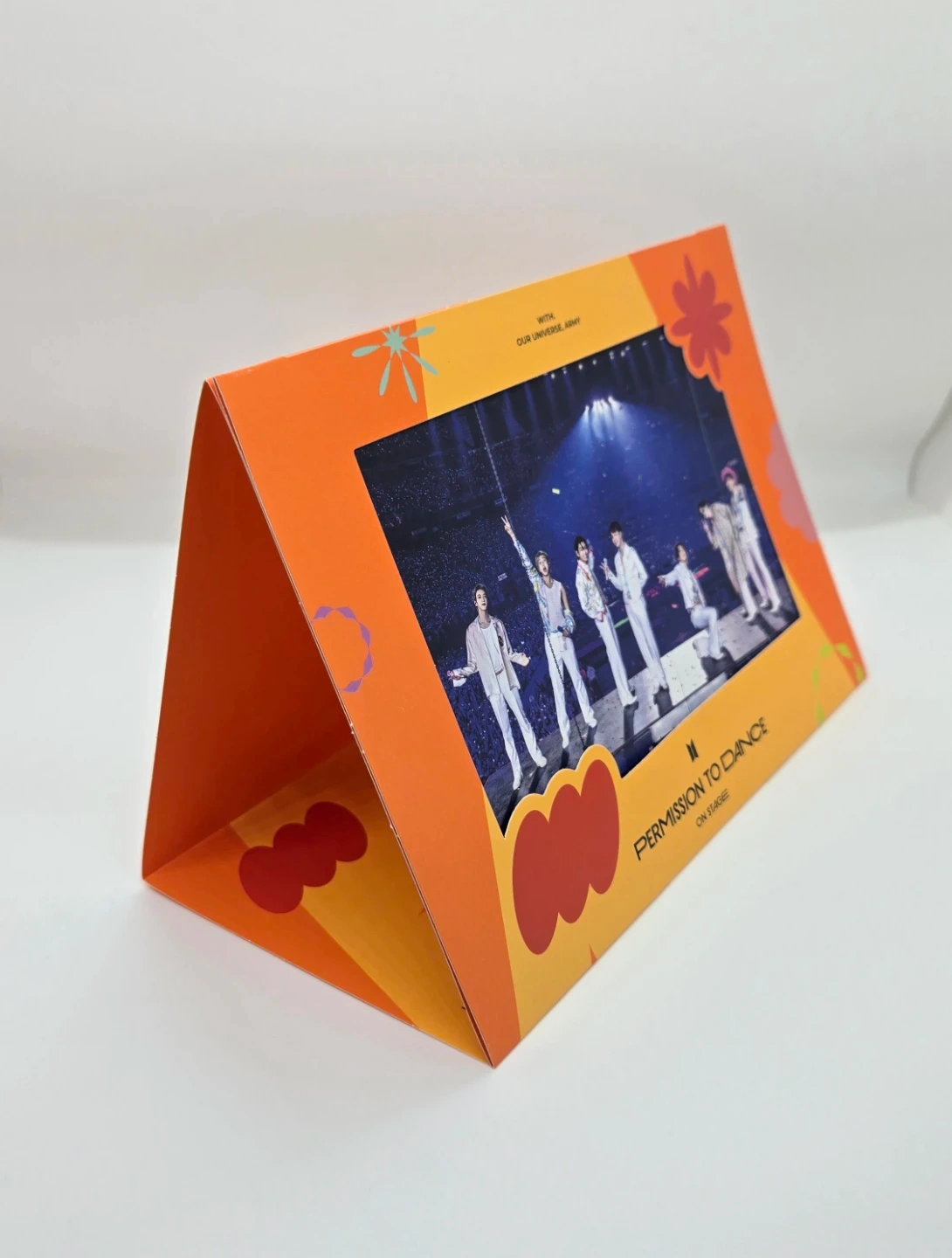 The BTS Permission to Dance on Stage US Digital Code is a unique and collectible item for ARMY. This original piece of music memorabilia includes a digital code for a special stage experience, 2 photobooks, Photocard set, Postcard, Frame Stand and a photo charm featuring J-Hope, one of the group members. Perfect for ARMY this item offers a special opportunity to add a unique piece of entertainment memorabilia to their collection.
