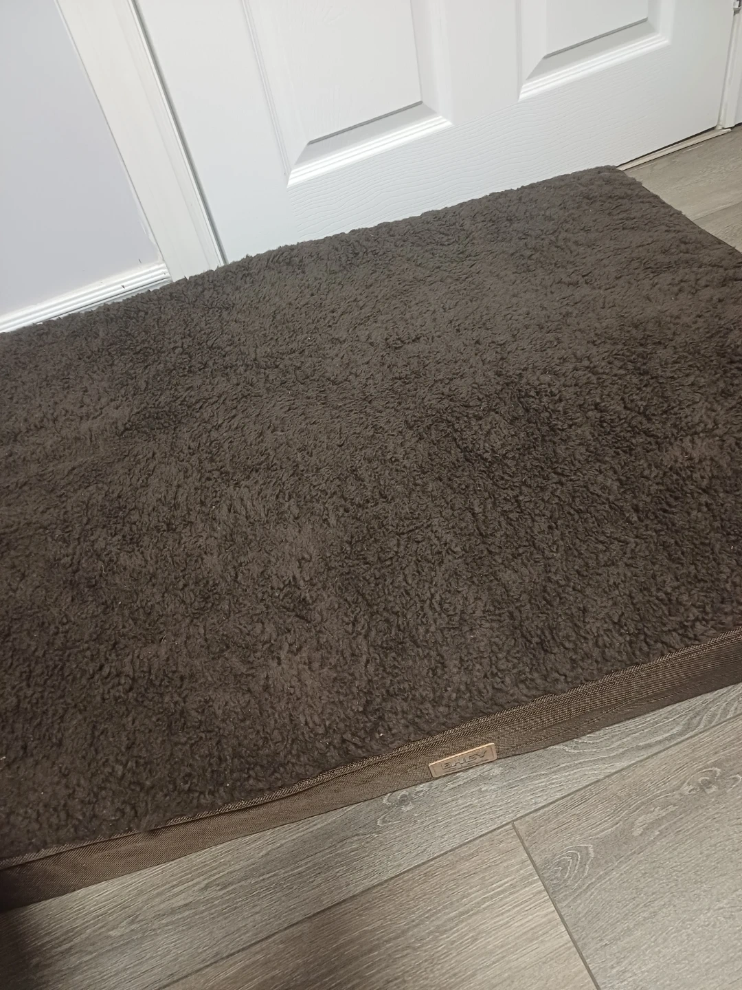 Selling a brand new Eheyciga Cozy brown sherpa dog bed, size large. It measures 36x27x3.5 inches and supports pets up to 65 lbs. Plush surface for ultimate comfort. Good for keeping your furry friend comfy!