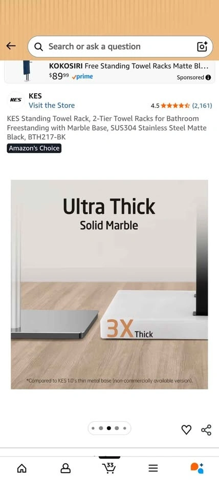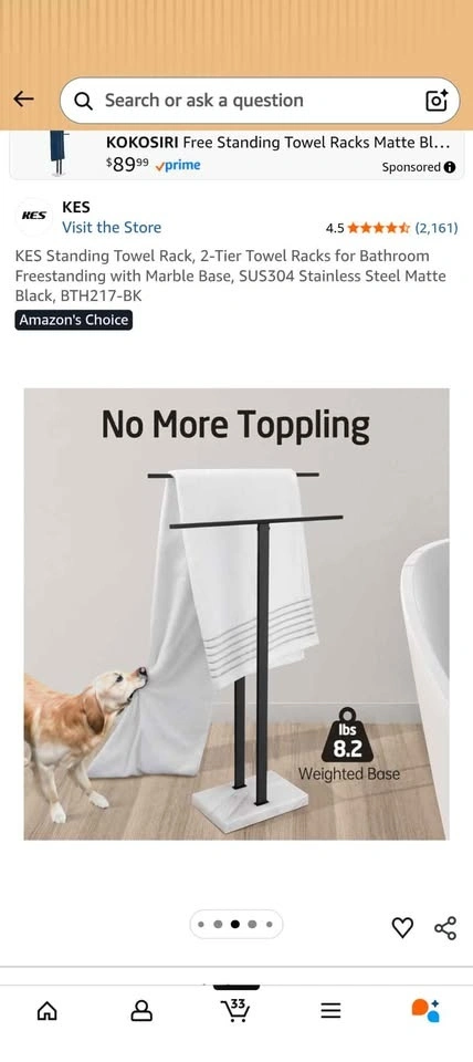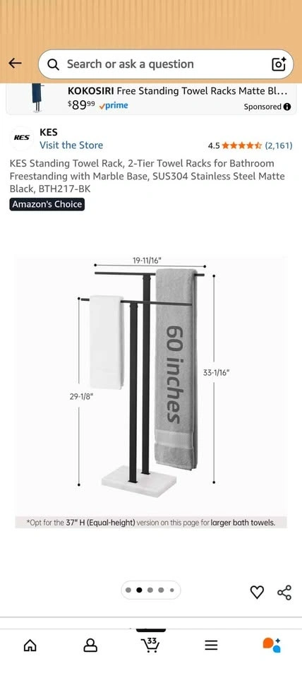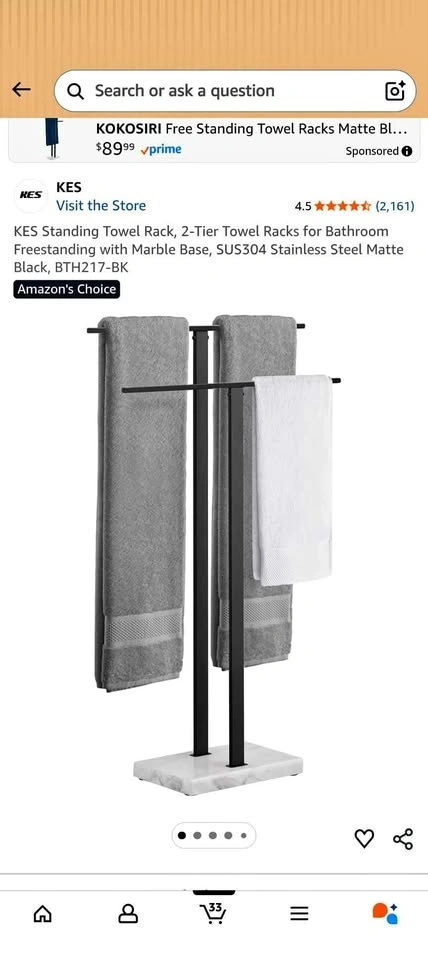 Buy & SellKES Standing Towel Rack, 2-Tier Bathroom Freestanding w/ MarbleKES Standing Towel Rack, 2-Tier Bathroom Freestanding w/ Marble$50The base is slightly used. The rest is all new. Pick up in Richmond close by Walmart.WHERE TO MEETWalmart SupercentreView MapSELLERverifiedEltonW Camble29020 reviews0 chats·1 favorites·4 viewsSEND CHAT TO SELLERHi Elton! I’m interested in your listing.Hi Elton! I’m interested in your listing.Get the Karrot app to chatSign In to chat