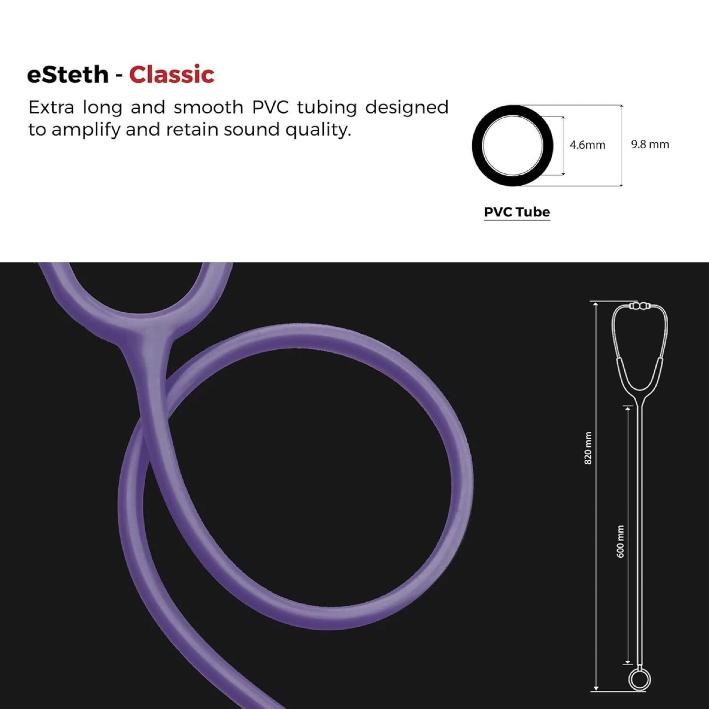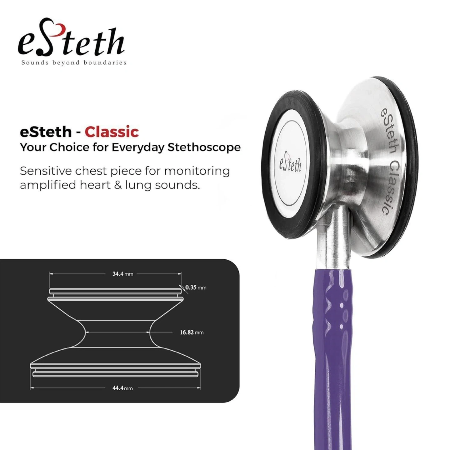 Retail $139.00 | eSteth Classic Stethoscope - Sensitive Chest Piece for Monitoring Amplified Heart & Lung Sounds - Lightweight Design, Flexible Stethoscope Tubing - Extra Ear Tips & Non-Chill Ring - 32" Long, Purple | New