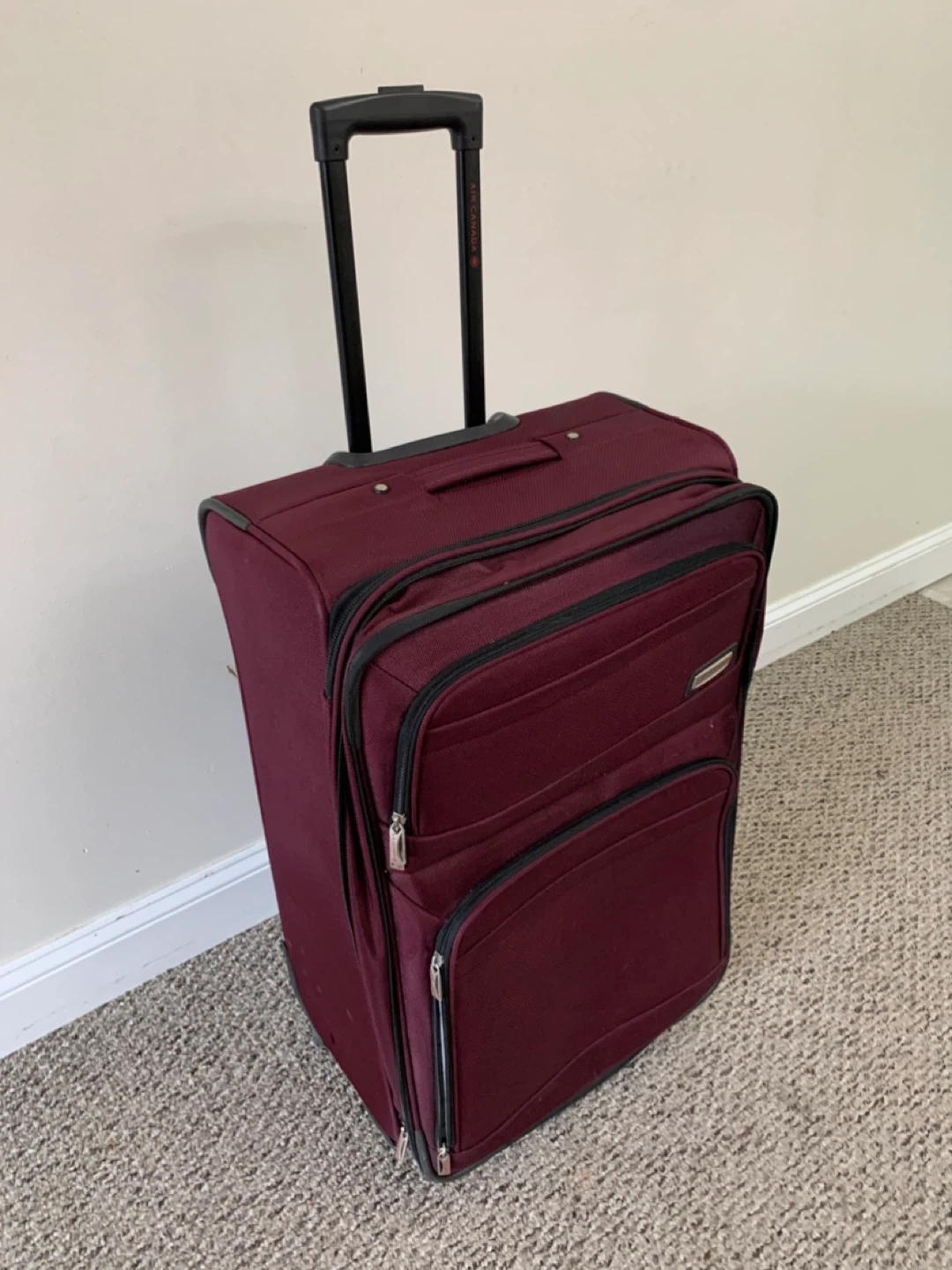Luggage - Checked Suitcase / Bag Burgundy Softside Wheels