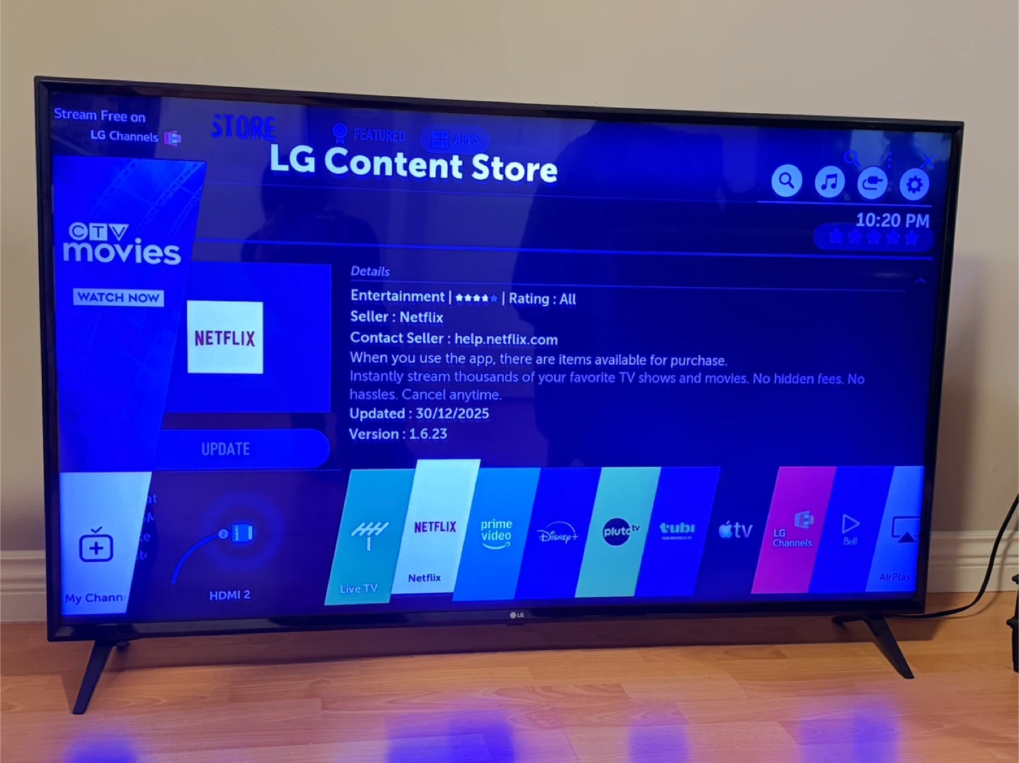 • Display: 55-inch 4K ultra HD with LG Content Store access.