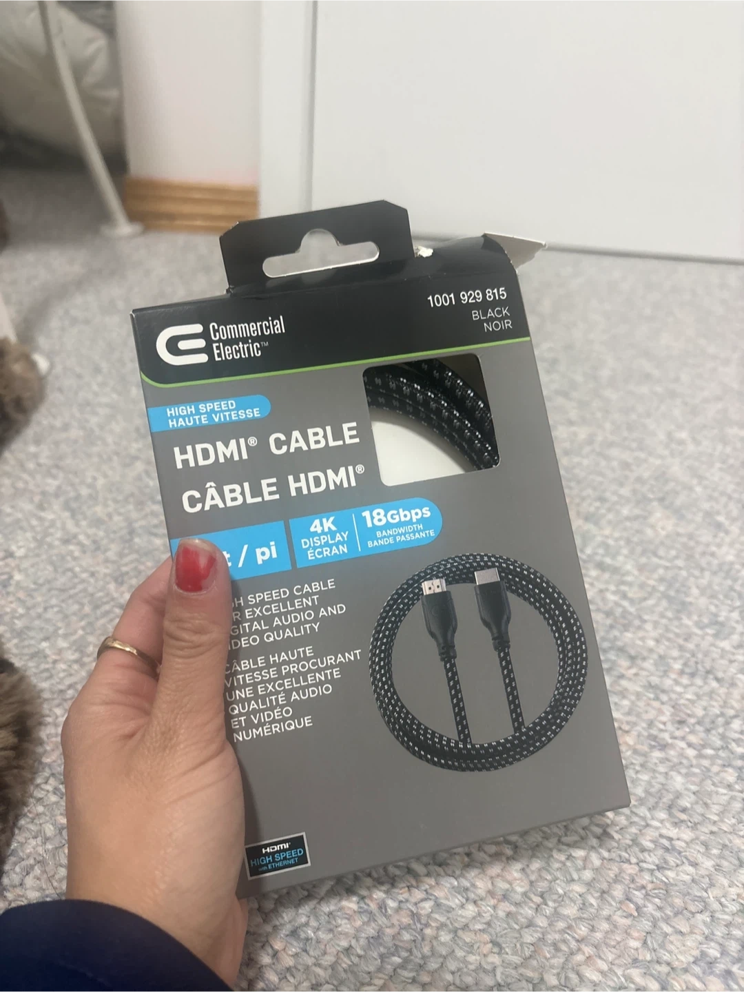 Commercial Electric HDMI cable. Supports 4K display and 18Gbps bandwidth for excellent digital audio and video quality. It's a high-speed cable with Ethernet. Pick up cash only