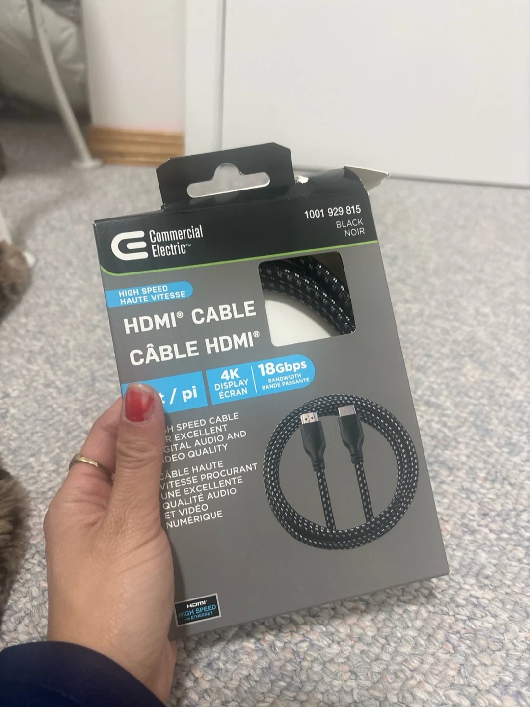 This is a Commercial Electric high-speed HDMI cable. It supports 4K display and 18Gbps bandwidth for excellent digital audio and video quality. It's designed for high-speed data transfer.