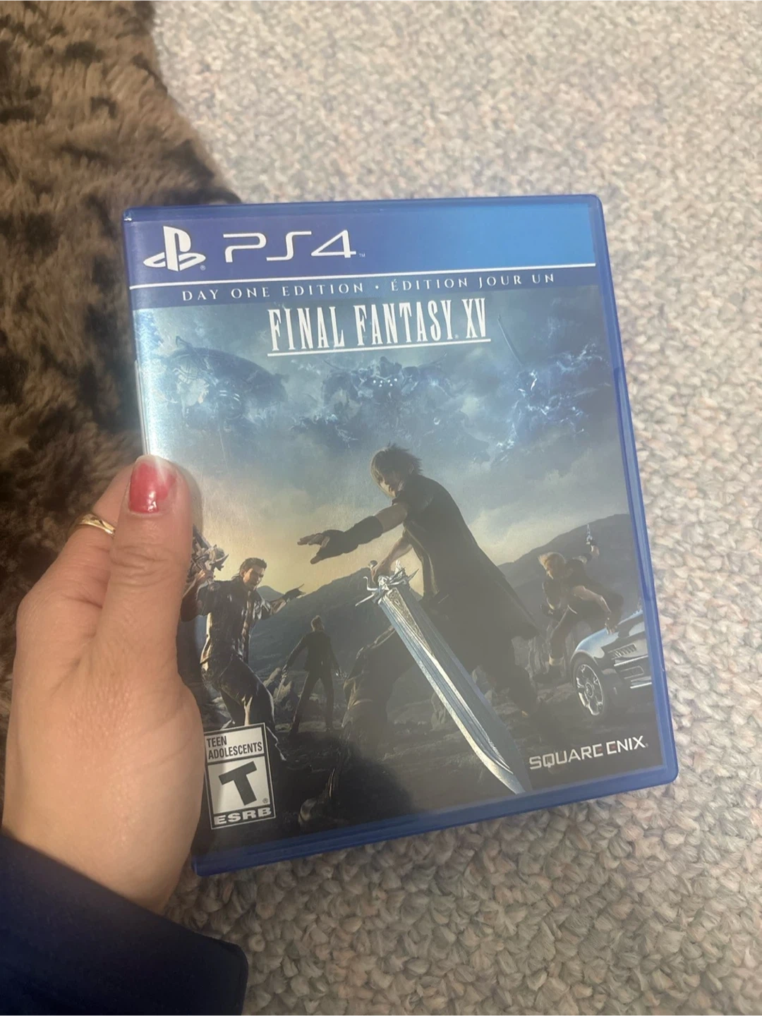 This is the Final Fantasy XV Day One Edition for PlayStation 4. It's a video game disc with ESRB Teen rating. Includes original case. Pick up cash only