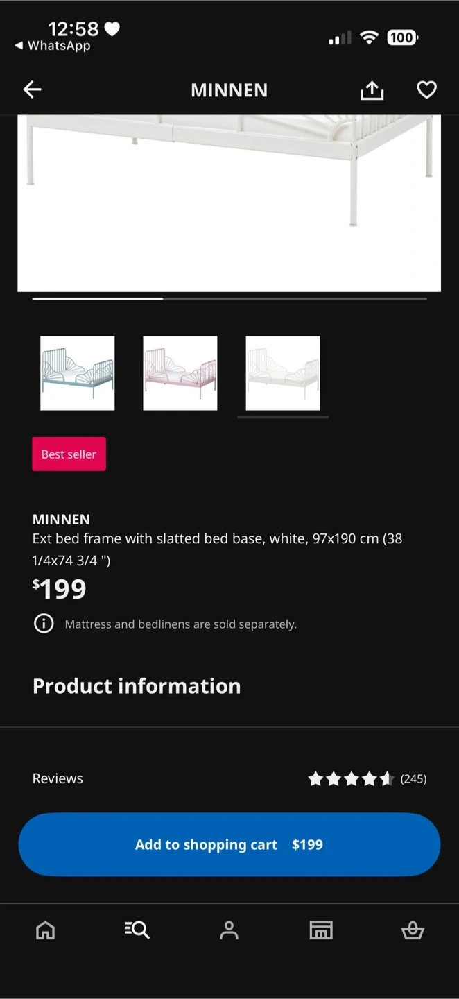 Buy & SellIKEA MINNEN Extendable Bed FrameIKEA MINNEN Extendable Bed Frame$238White IKEA MINNEN extendable bed frame with slatted bed base. It's 97x190 cm (38 1/4x74 "). Mattress includedConditionLike newWHERE TO MEETCheck LocationView MapSELLERverifiedFundaVictoria W600 reviews0 chats·0 favorites·9 viewsSEND CHAT TO SELLERHi Funda! I’m interested in your listing.Hi Funda! I’m interested in your listing.Get the Karrot app to chatSign In to chat