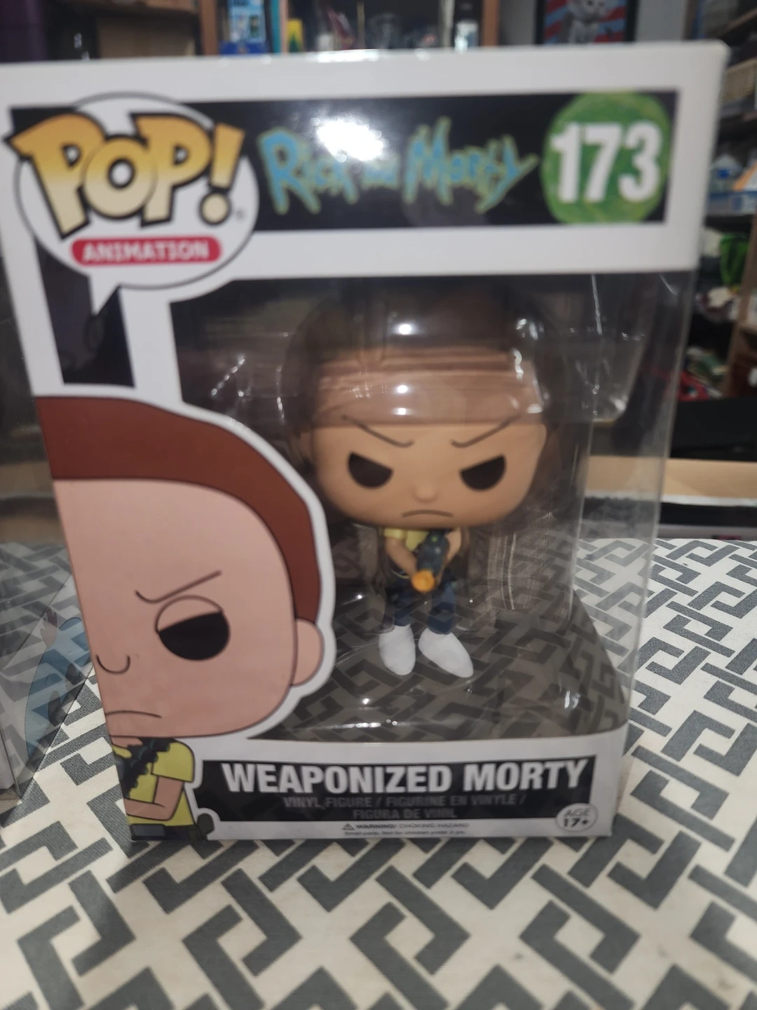 This is a Funko Pop! Animation vinyl figure of Weaponized Morty from Rick and Morty. It's figure number 173 in the collection. Recommended for ages 17+.