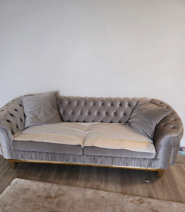 3-piece Grey Turkish sofa and Loveseat with Gold Accents
