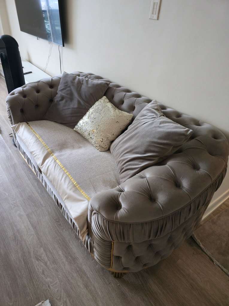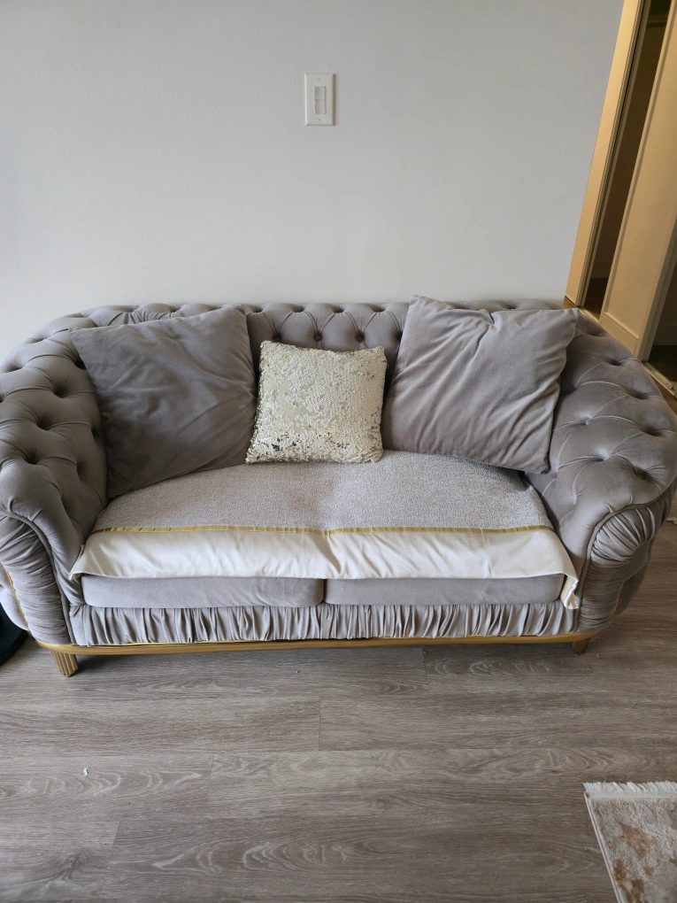 3-piece Grey Turkish sofa and Loveseat with Gold Accents