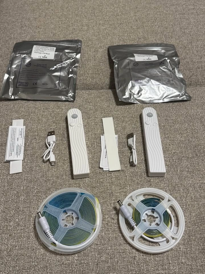 Motion sensor LED light strip with bright white light. Automatically turns on when motion is detected and shuts off after the set timer. Great for adding clean, modern lighting in dark areas. Ideal for stairs, kitchens, hallways, closets, and under cabinets. Features: White LED light, PIR motion sensor, Day mode & night-only mode, Always-on option, Adjustable timer (15 seconds up to 5 minutes), Rechargeable via Micro USB, Easy peel-and-stick installation, Flexible LED strip. Great for: Stairs & hallways, Under-cabinet kitchen lighting, Closets & pantries, Night safety lighting. No wiring needed — installs in minutes. $20 for 1m. Local pickup in Seton. Cash or e-transfer accepted.