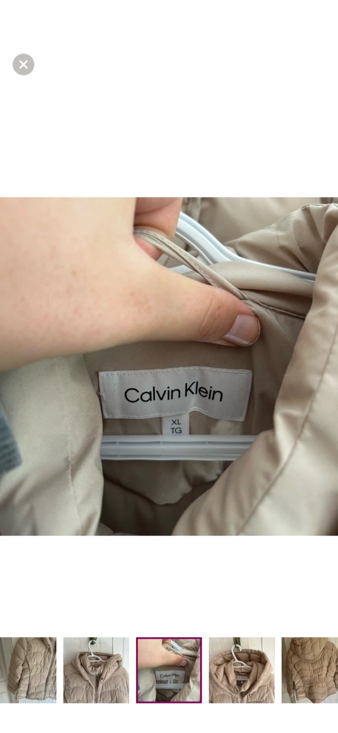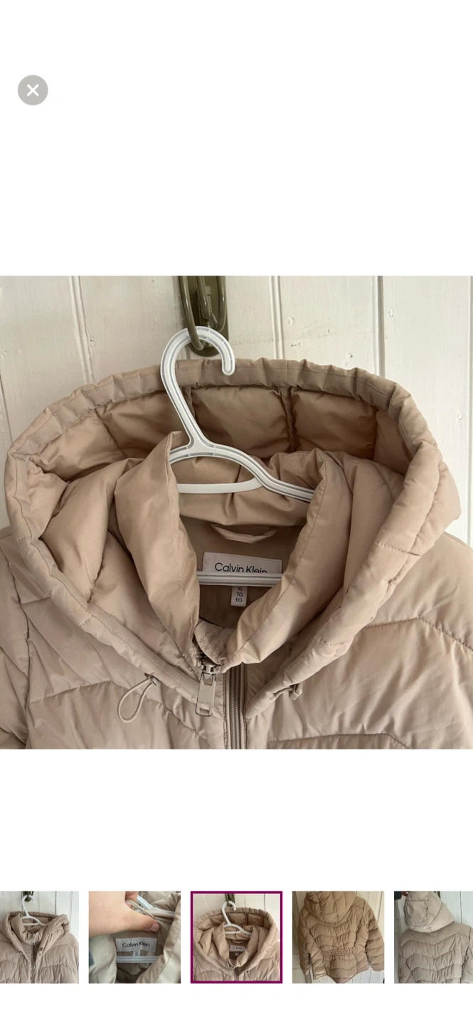Calvin Klein brand. Zip up hooded winter puffer jacket. Size women’s xl. Tan in colour. Brand new condition