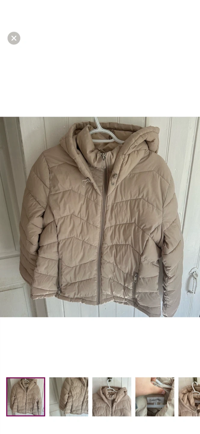 Calvin Klein brand. Zip up hooded winter puffer jacket. Size women’s xl. Tan in colour. Brand new condition