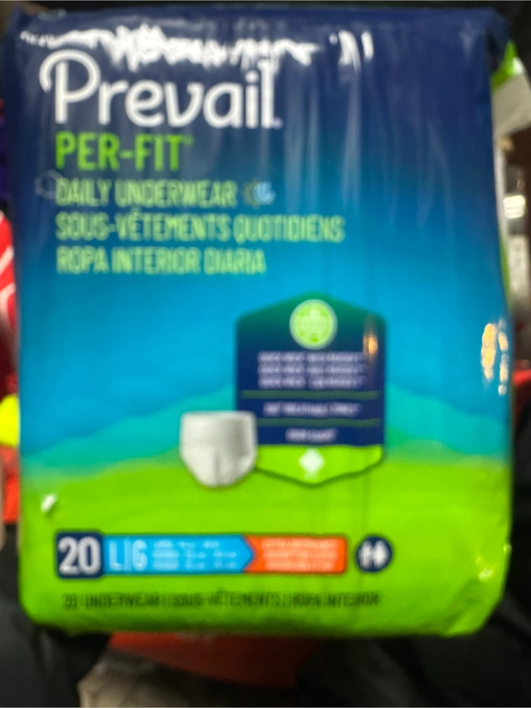 Prevail Per-Fit daily underwear is designed for everyday use. This package contains 20 individual units. It's intended for adult incontinence support.