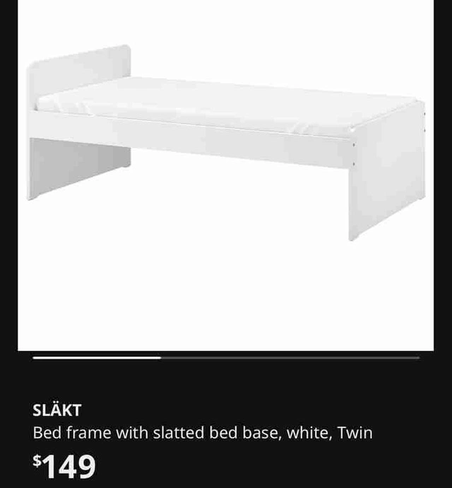 Ikea white twin bed frame for sale. Mattress is also in great condition if you need one. Both bed frame and mattress for $100. Pick up in North York.
