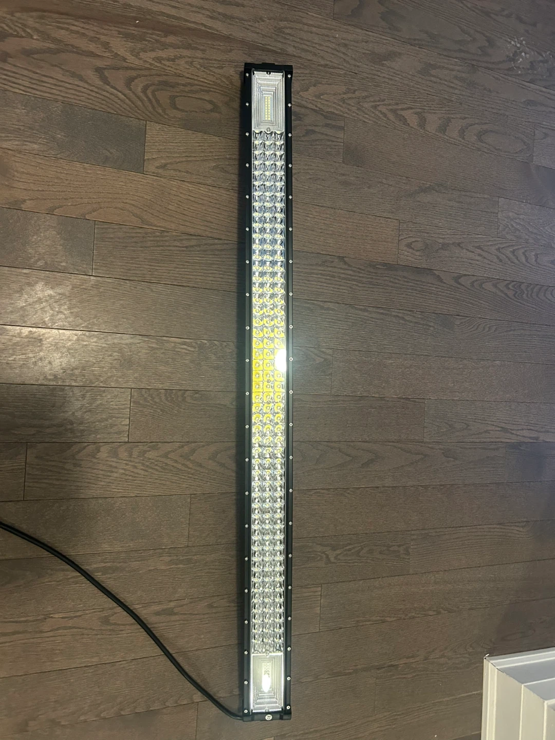 This is an LED light bar. It's designed for DC 12-30V power input and is IP67 rated for water and dust resistance. This light bar is useful for off-road vehicles and outdoor applications. 42” three row. New.