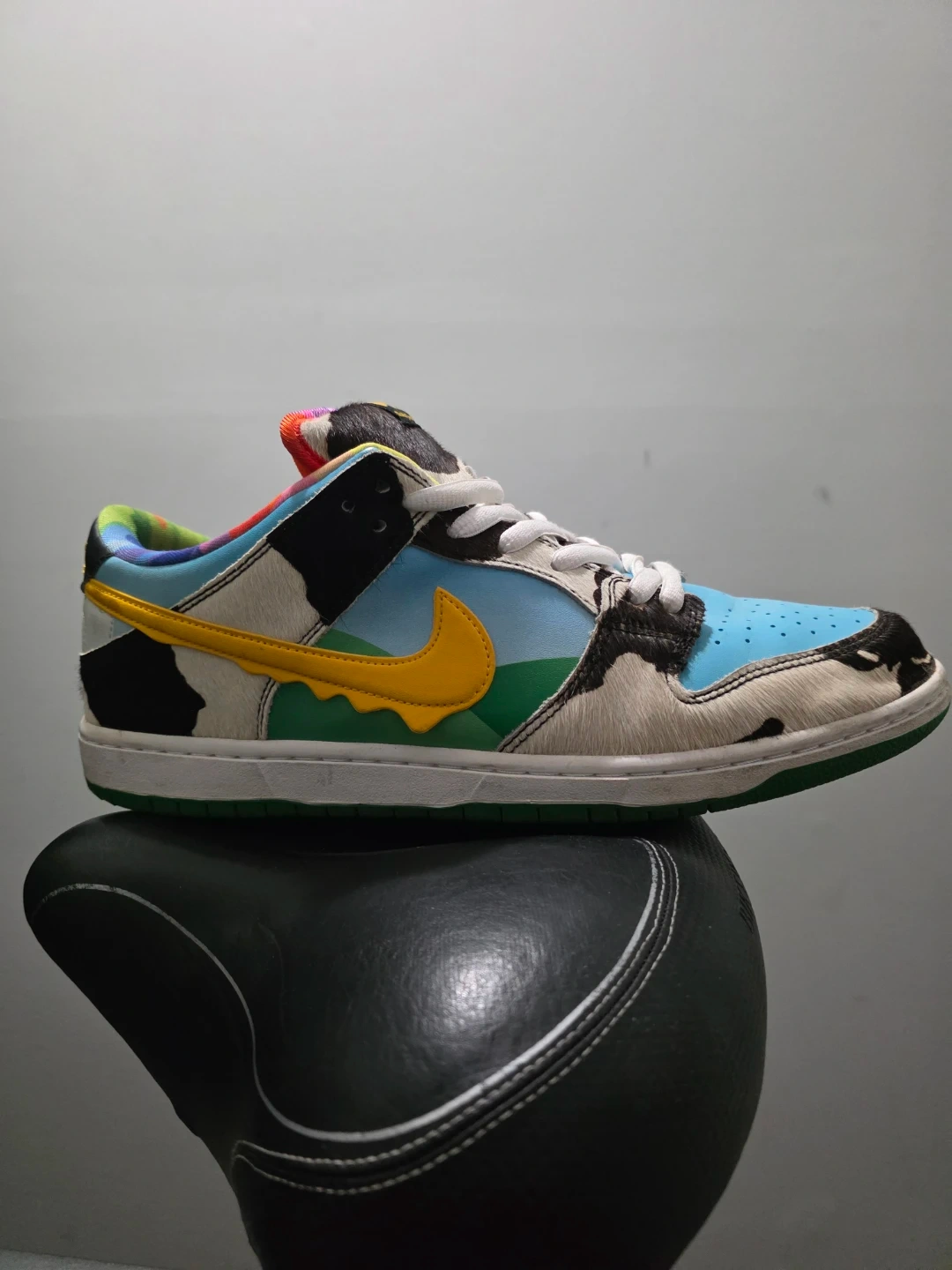 These Nike SB Dunk Low sneakers feature a unique cow print and green landscape design. They're crafted with premium materials for comfort and durability. This design is great for making a statement!