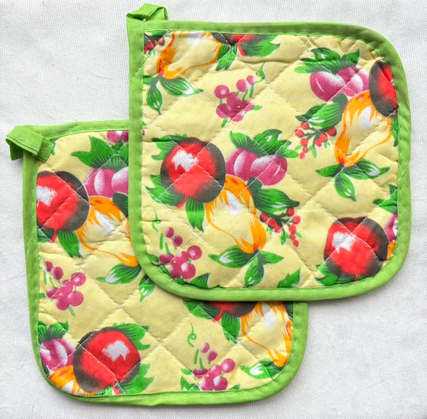 Set of 2 Quilted Heat-Resistant Potholders – Fruit & Floral Print