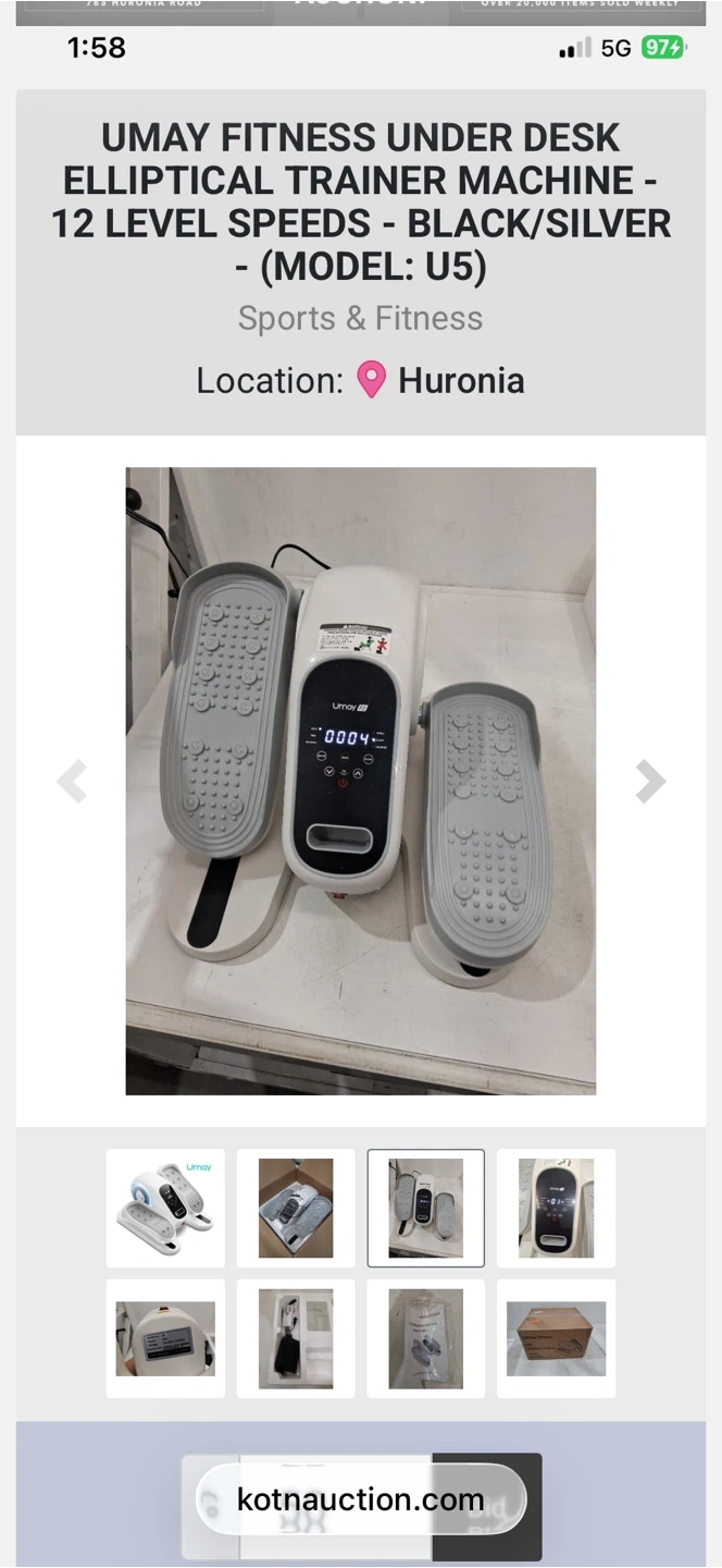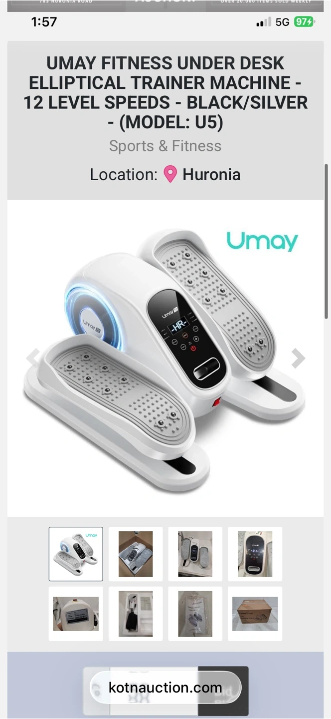 This UMAY Fitness under desk elliptical trainer offers 12 levels of resistance. It's white with a model number U5. It's compact and suitable for use with your desk or while watching TV