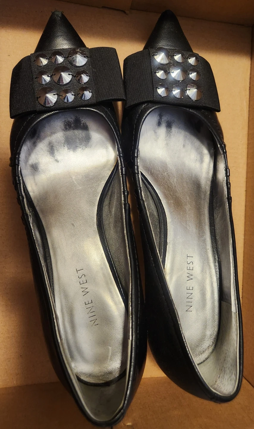 Giving away a pair of Nine West black heels in size 7.5. They have a cute studded embellishment on the front.