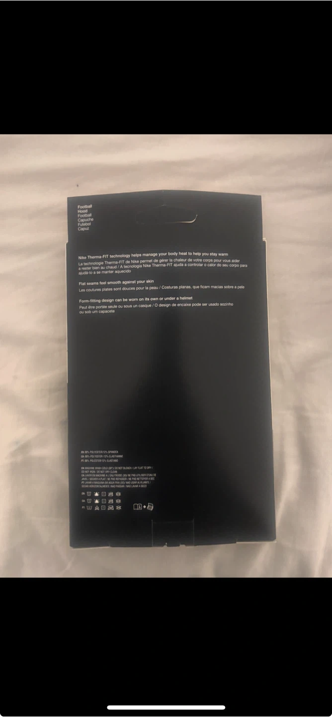This Nike Pro Therma-FIT hood is designed for football. It helps manage your body heat to keep you warm. Flatlock seams are doubled for durability against your skin.