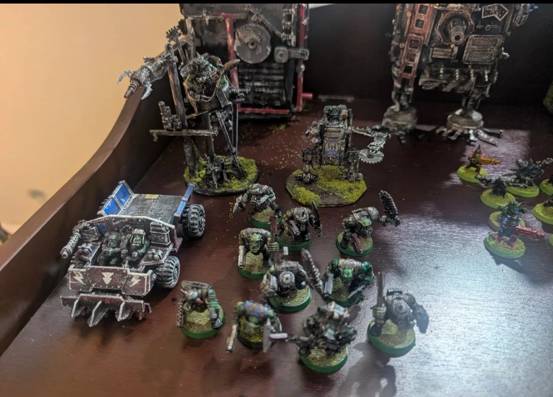 90's style retro Ork Army! This army comes with an eavy metal Mad Doc and Mek boy! Markari and a custom Ghazkul. 2 Ork Town Buildings. 2 Metal Dreadnoughts and a Deff Dread and a metal Killa Kan. 10 Gretchen, 10 Ork Boyz, 10 Kommandoz, a custom ork Traktor beam, a War Trukk and the exclusive Orktober 2025 Ork-o-Tron 40 000 custom Stompa.