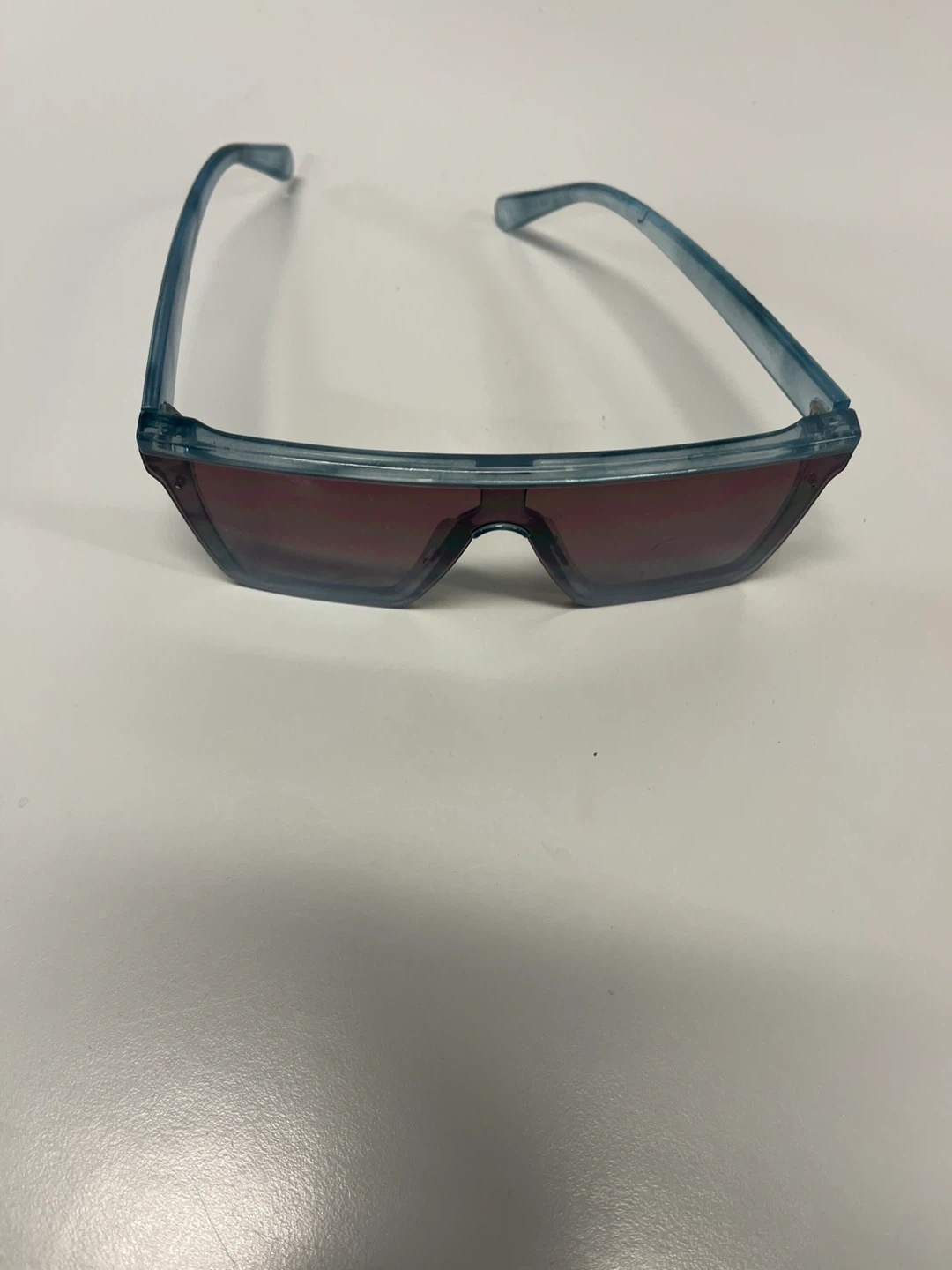 Blue plastic framed sunglasses by Martha Stewart. Features tinted lenses and a stylish, modern design. Great for everyday wear!